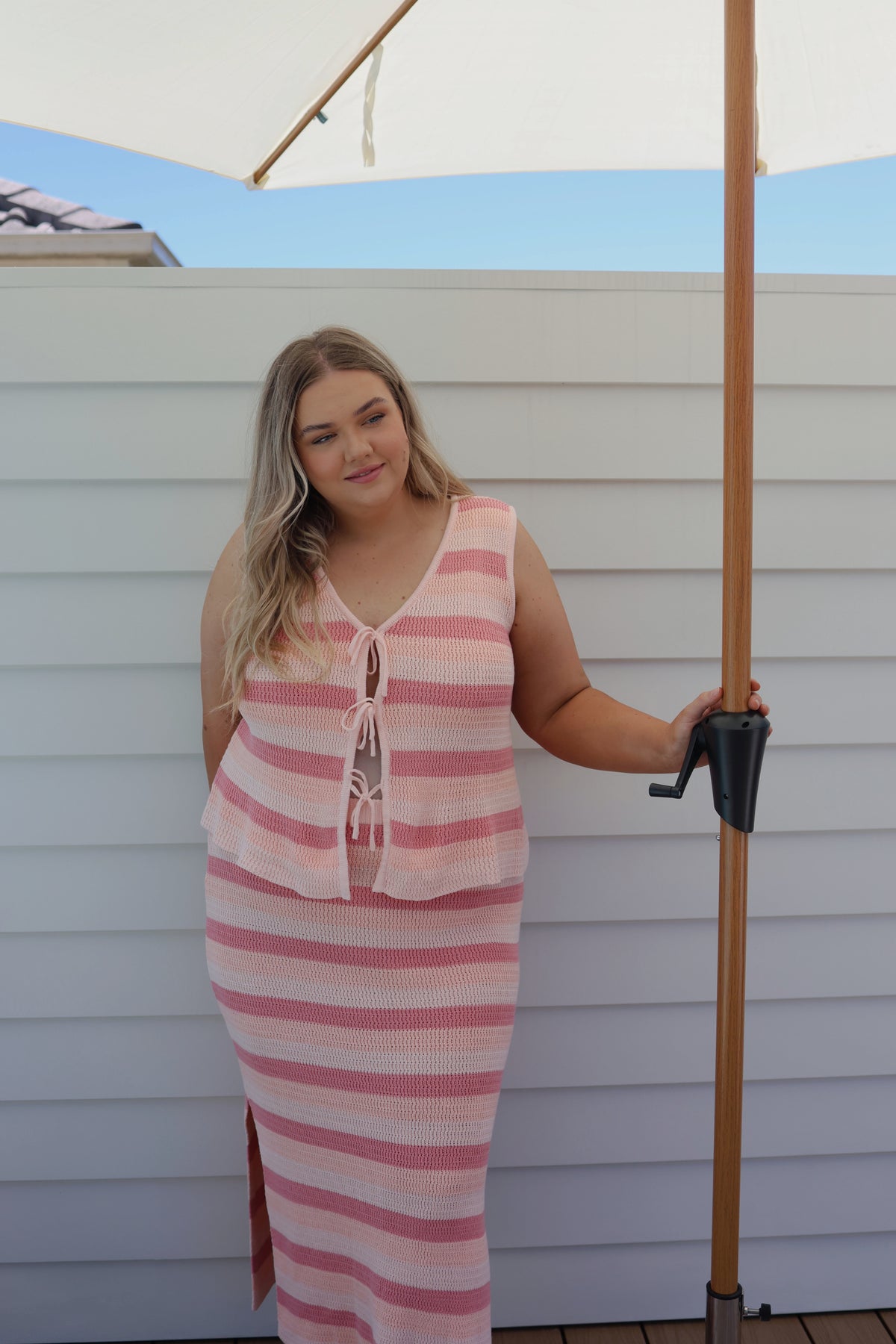 Knitted singlet featuring functional and adjustable ties to create the perfect fit, can be worn at front or back. Match with our Sierra skirt for the perfect outfit. Matching kids singlet also available.