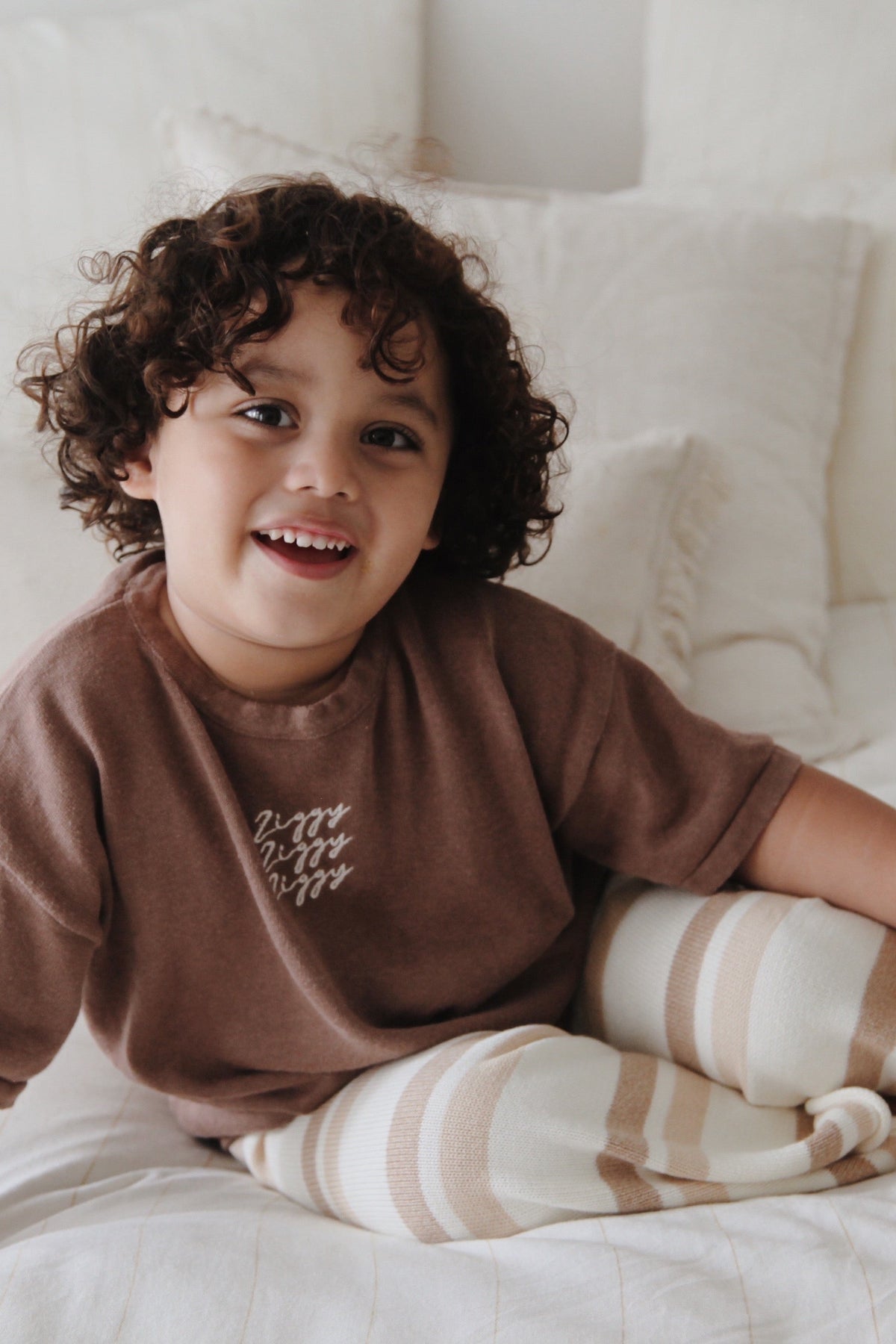 Striped thin knit pants featuring a cropped length, functional drawstring and elastic waist for the perfect fit. Matching Clay Stripes Jumper also available.