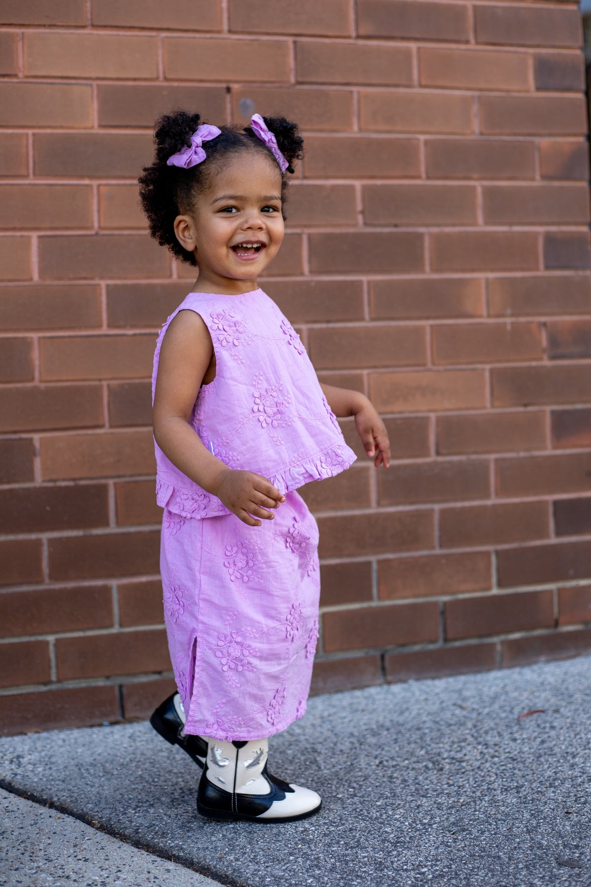 Lightweight, long cotton skirt in our detailed Suki fabric. Small side splits on either side and adjustable ties on each side of the soft elastic waist to create the perfect fit. Mix and match with items from ou Suki Collection.