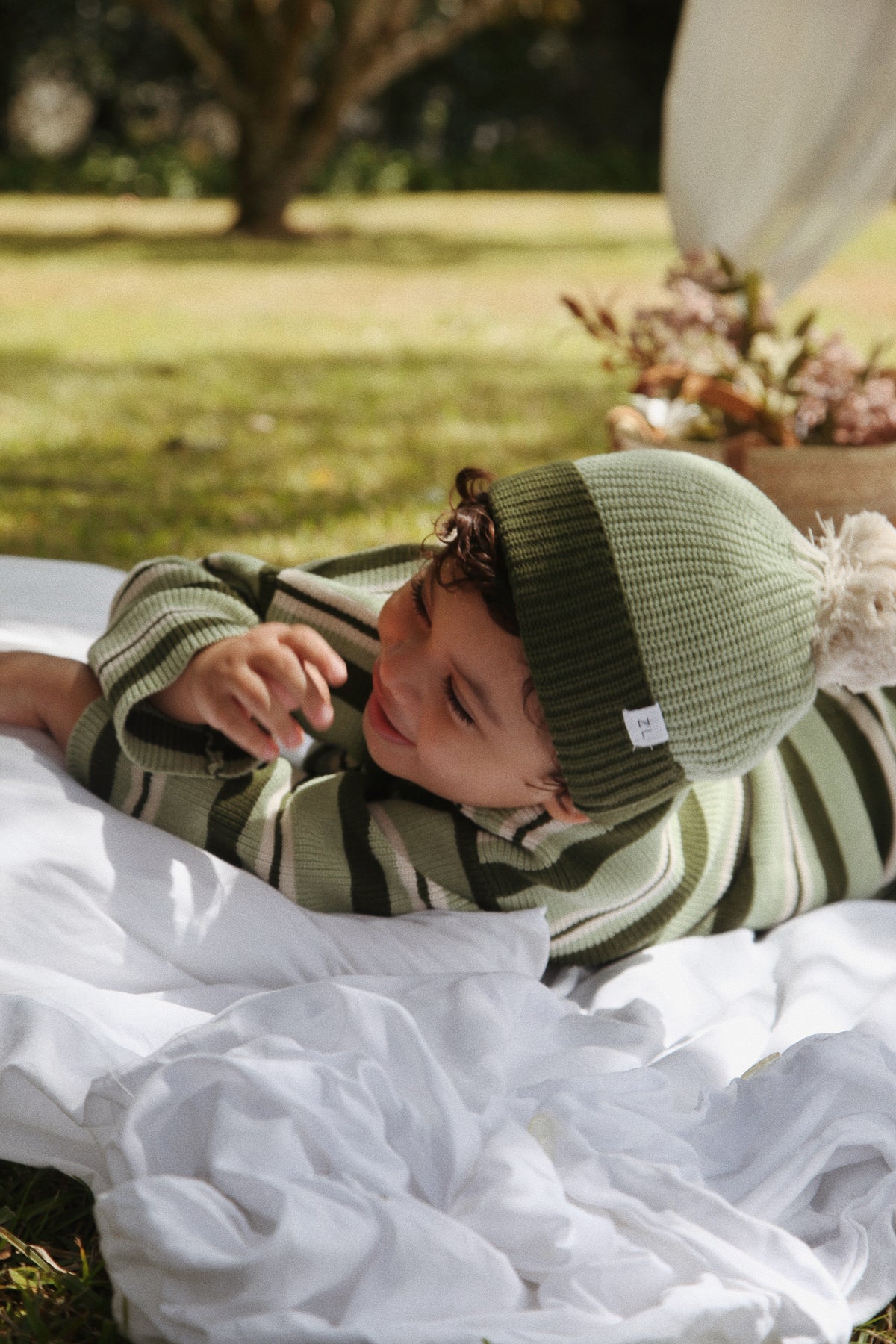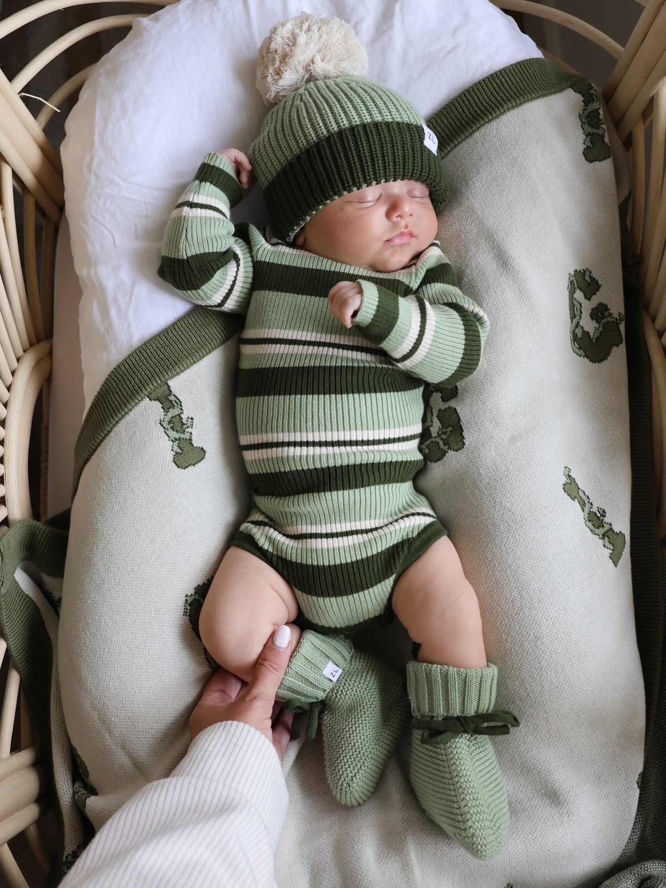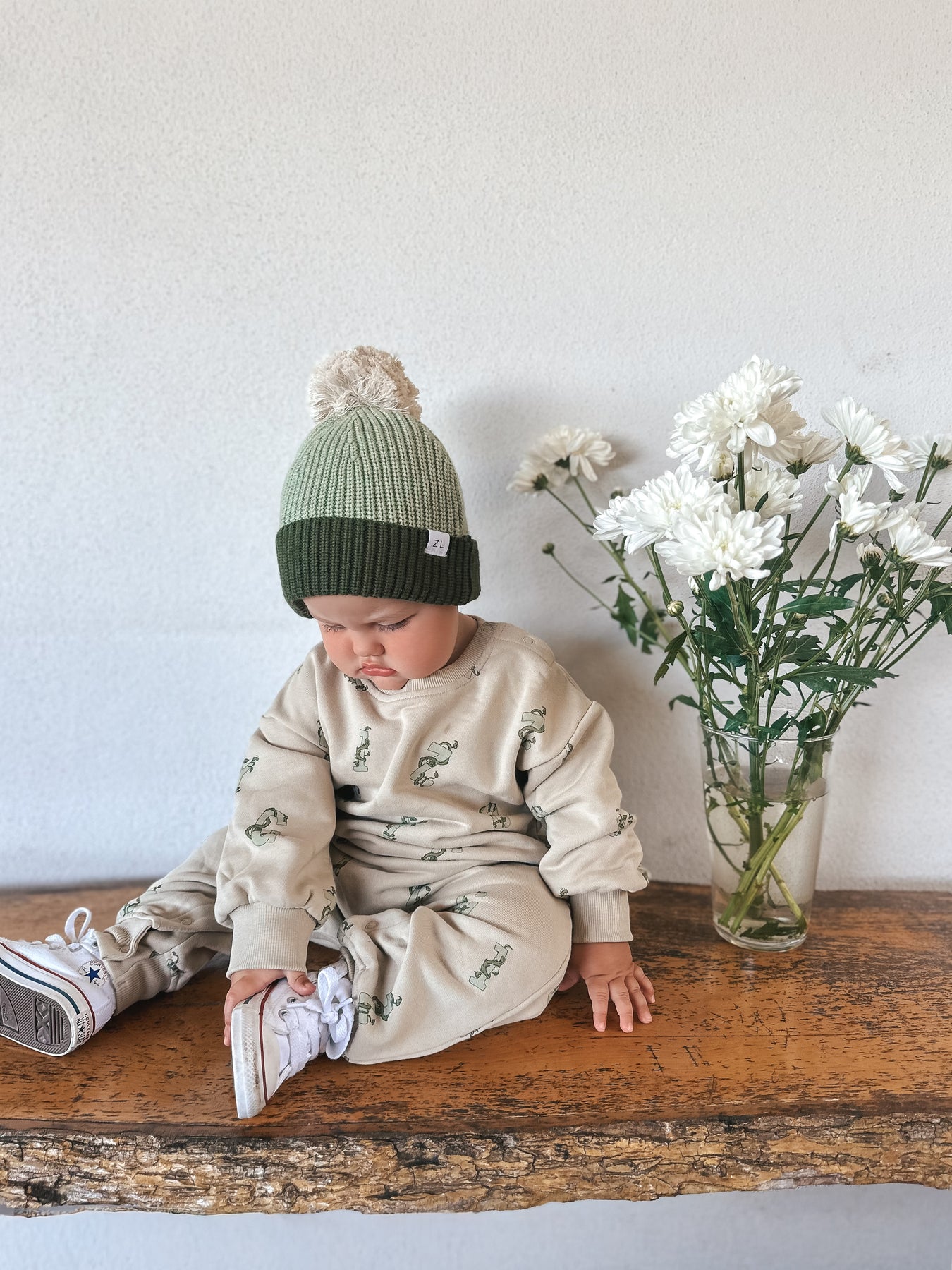 Original chunky knit beanie in our Basil colours to compliment our Basil, Aloe + Vines Collections.