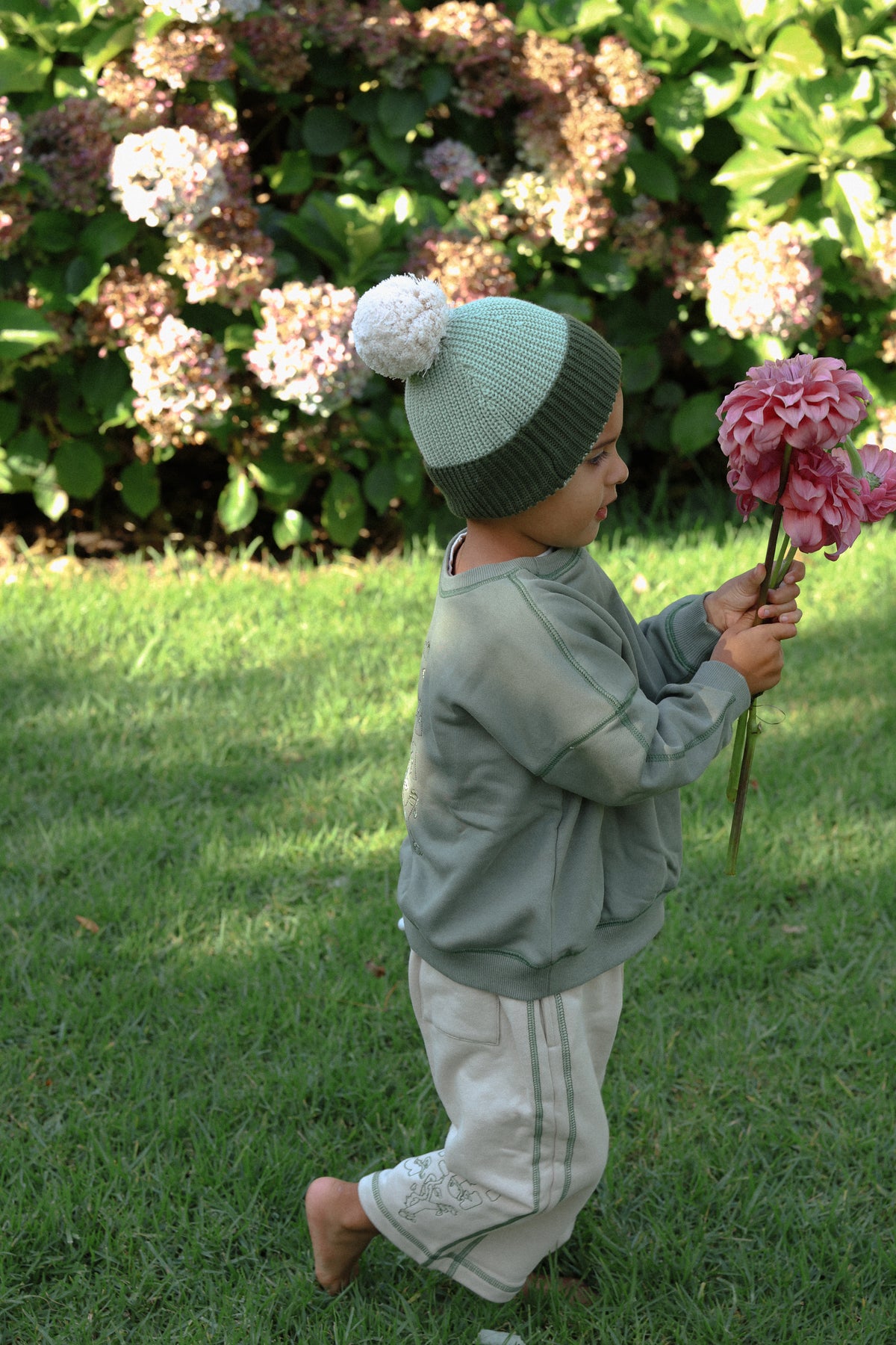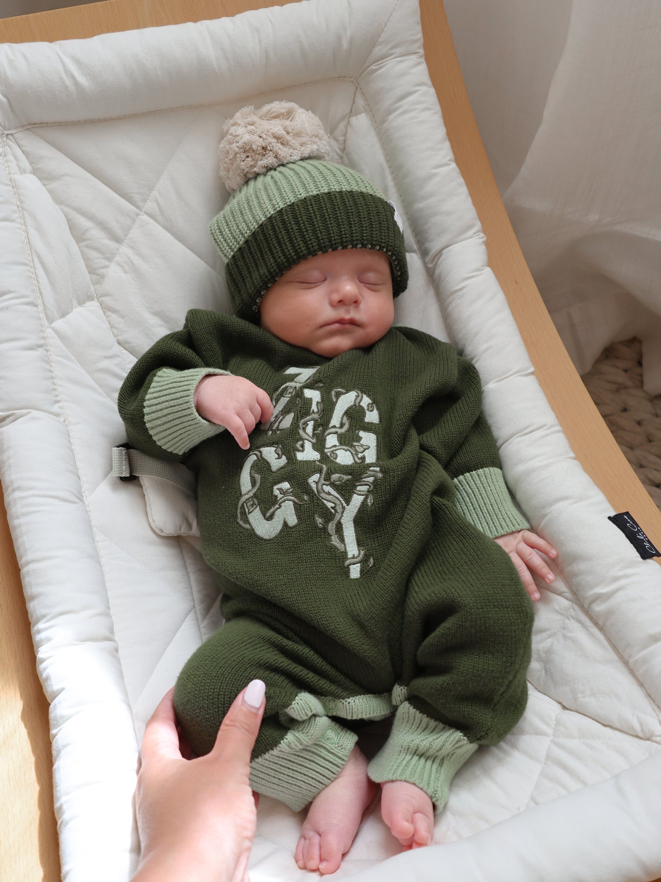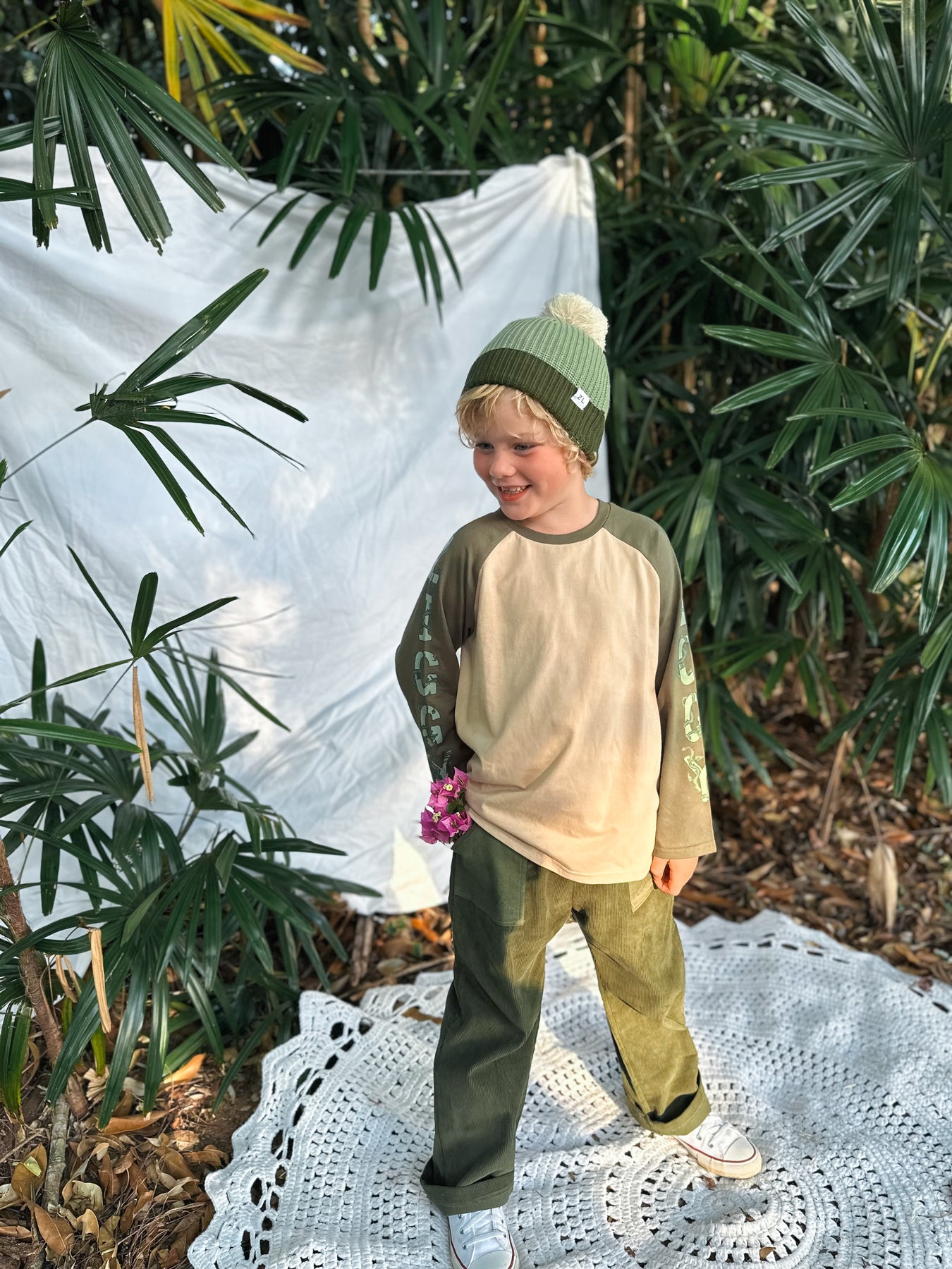Original chunky knit beanie in our Basil colours to compliment our Basil, Aloe + Vines Collections.