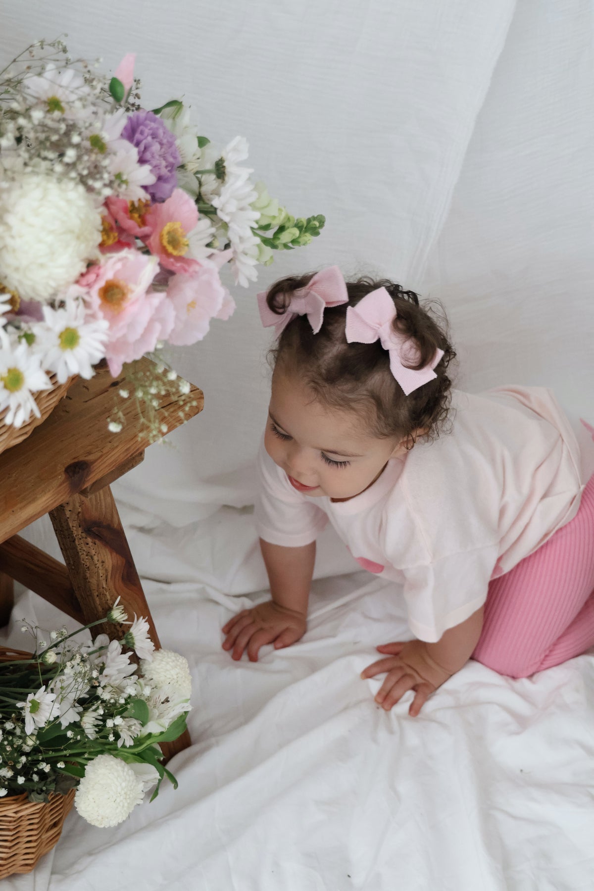 Safety | Never leave baby unattended with bow on. Remove bows before sleeping.