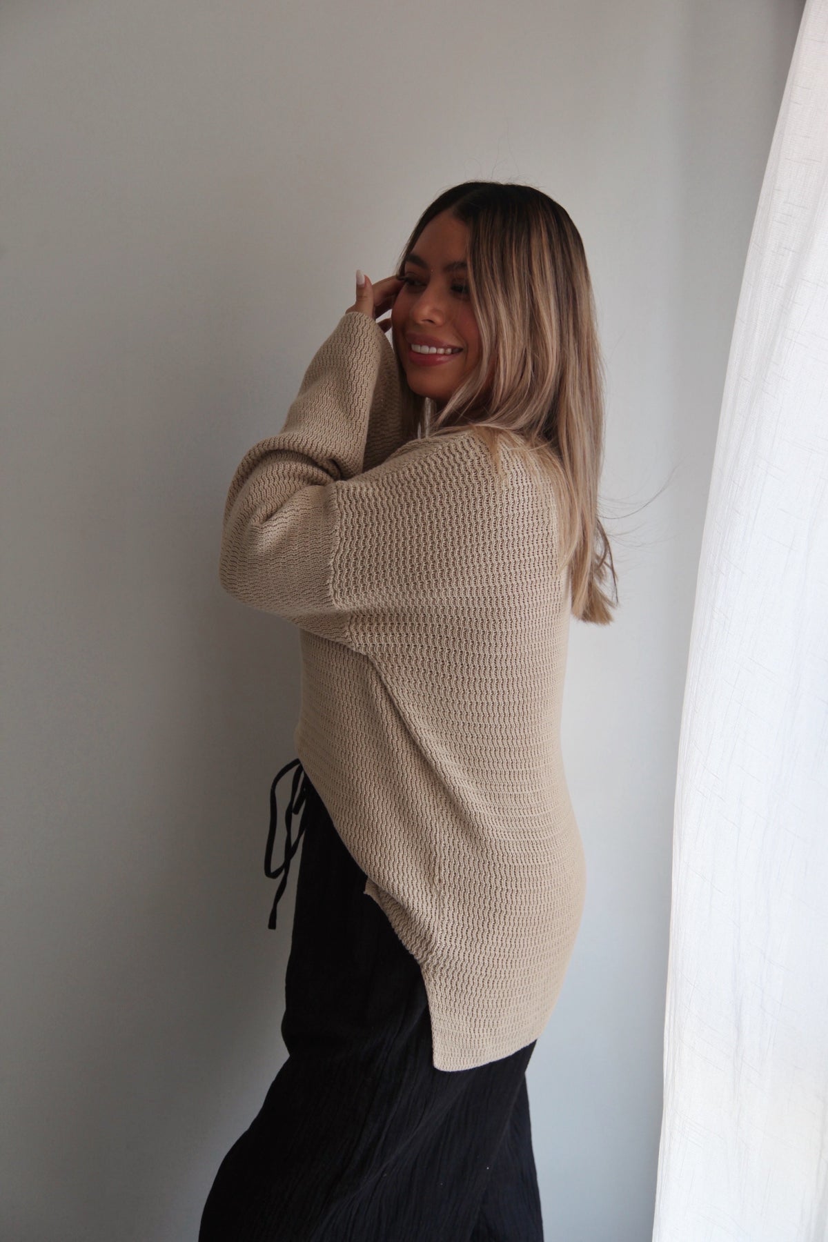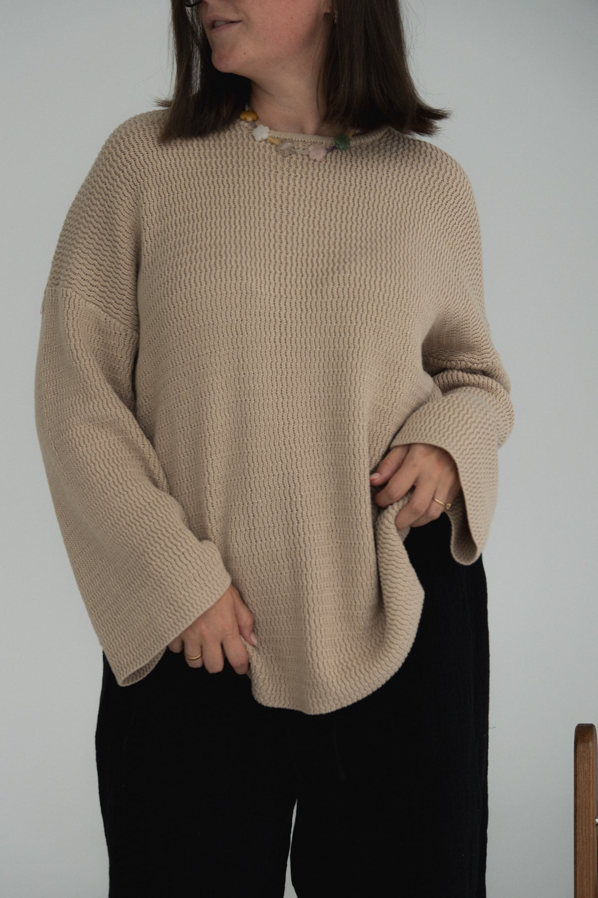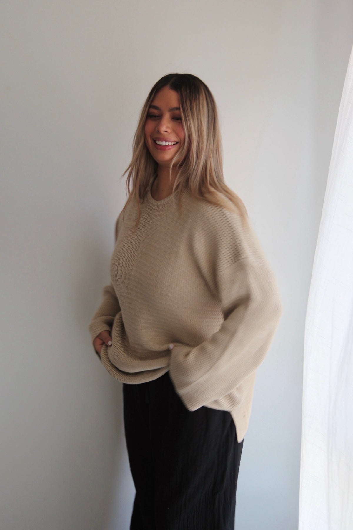 Oversized pullover featuring a loose knit design, loose cuffs and split on each side. Mix and match with items from our Women's Collection.