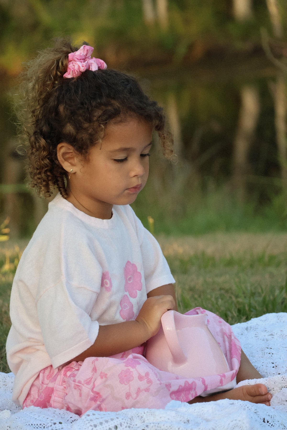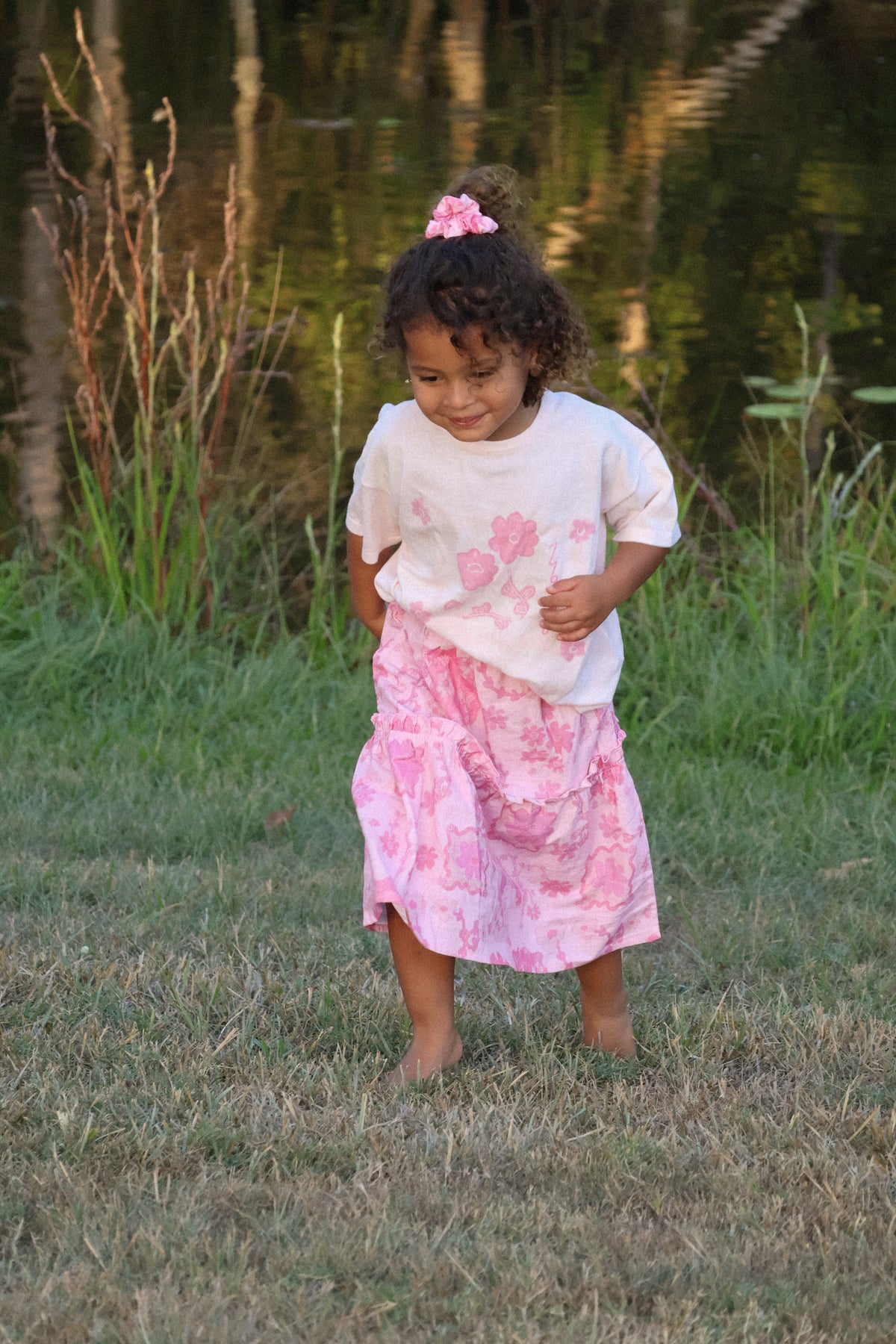 Lightweight cotton scrunchies in our Elora print.