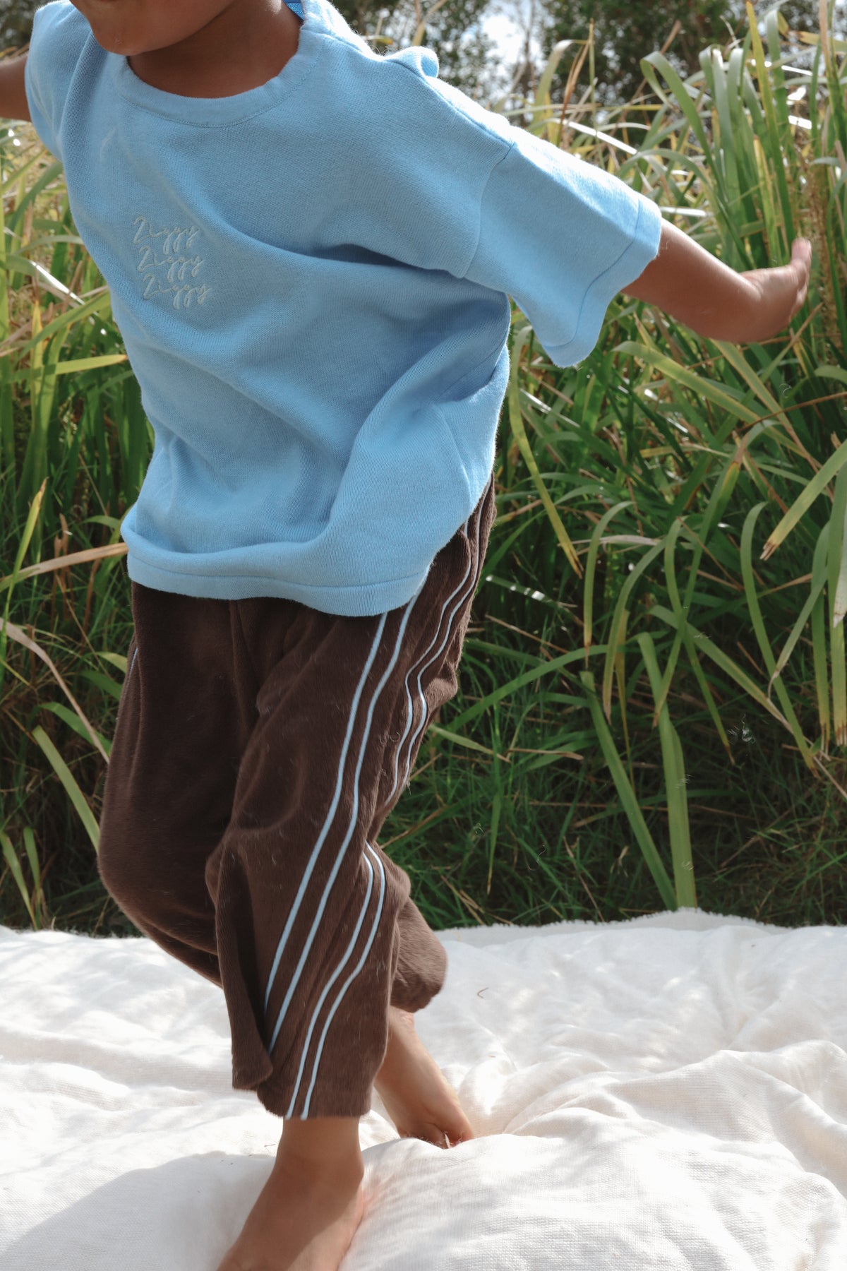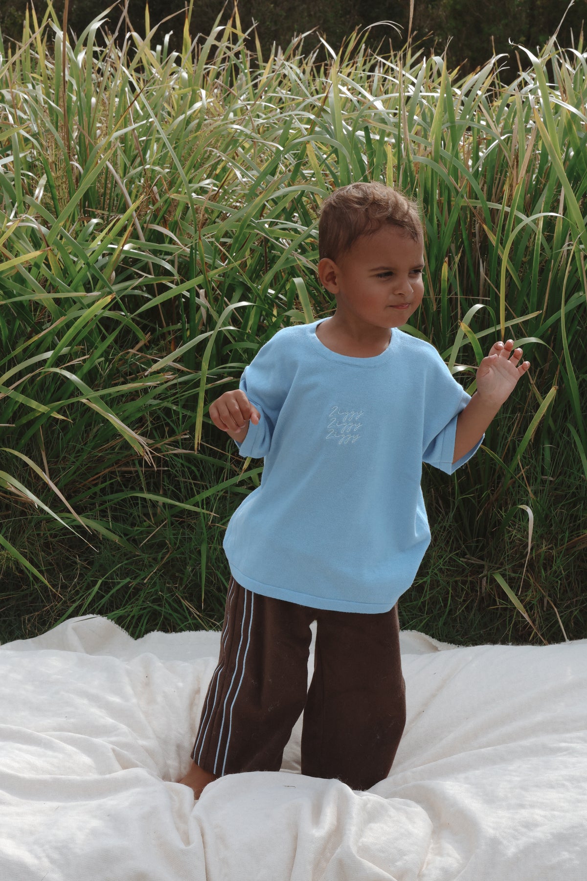 Please note | The Ziggy embroidery colour on this tee is different to our original River Signature tee. It features a light blue embroidery whereas our original tees were embroidered in Milk.