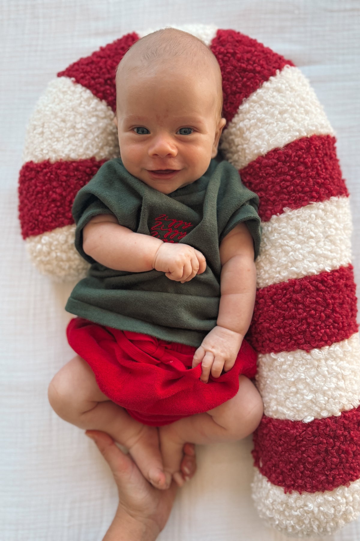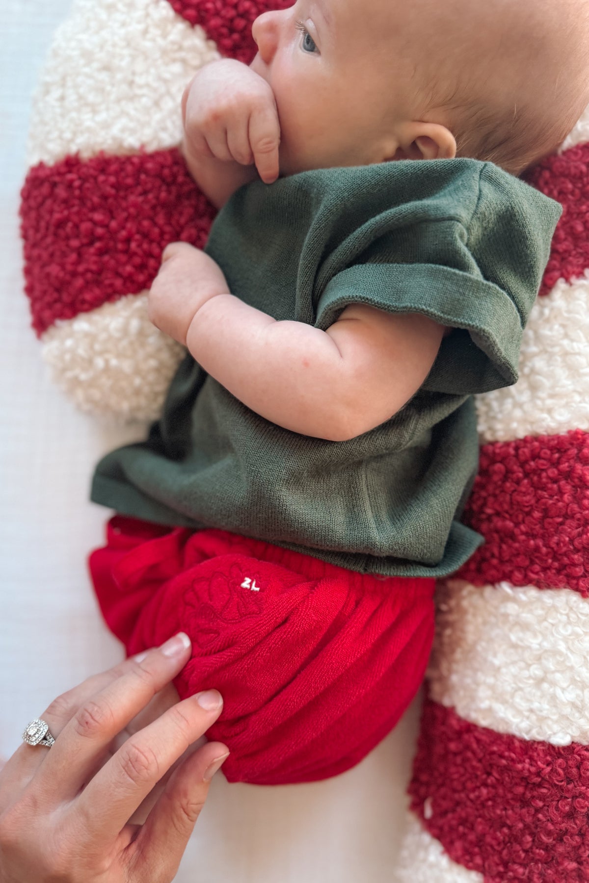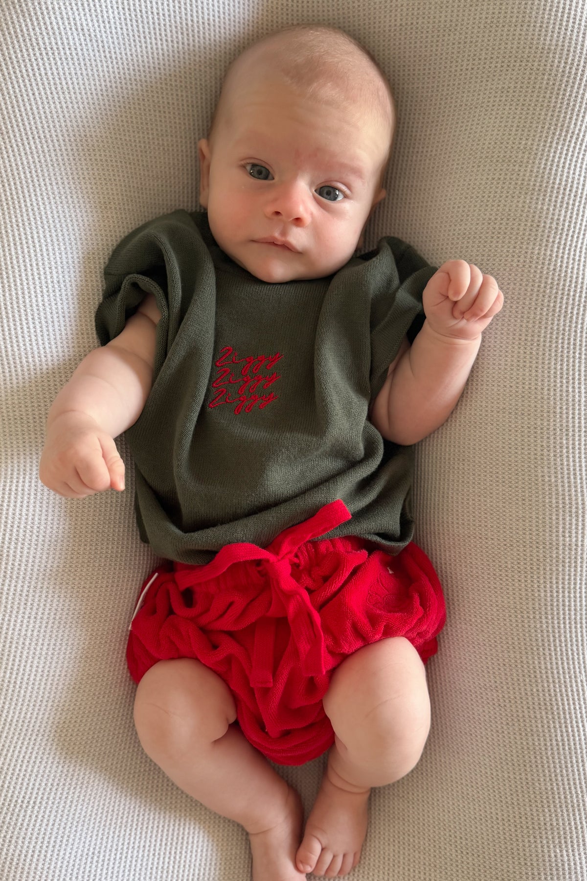 Terry towelling bloomers with an elastic waist + functional drawstring featuring our embroidered Shawn the Prawn design on the front. Mix and match with items from our Christmas Collection.