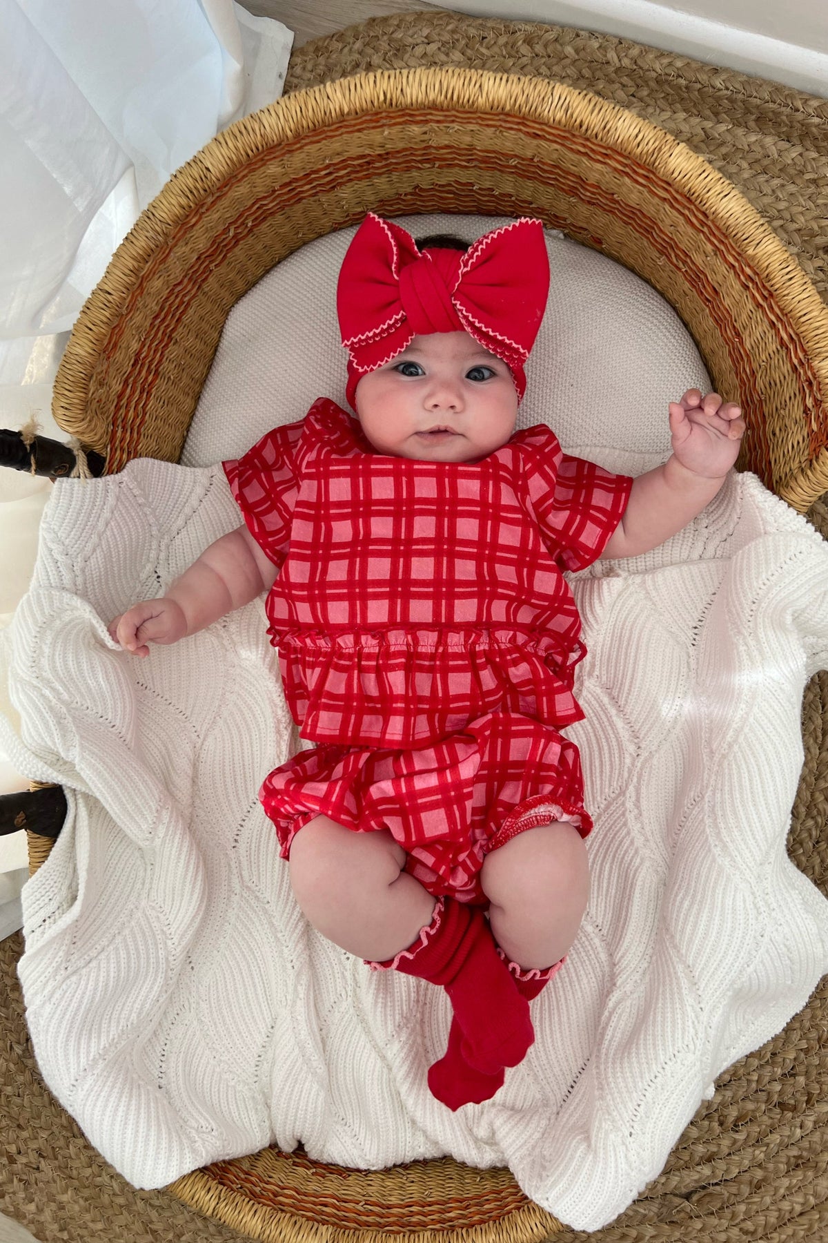 Cotton bloomers with a soft elastic waist and frill leg detail featuring our exclusive Jolie print. Mix and match with items from our Christmas Collection.