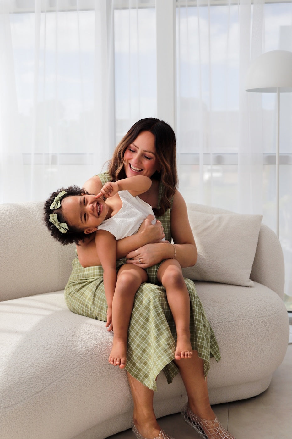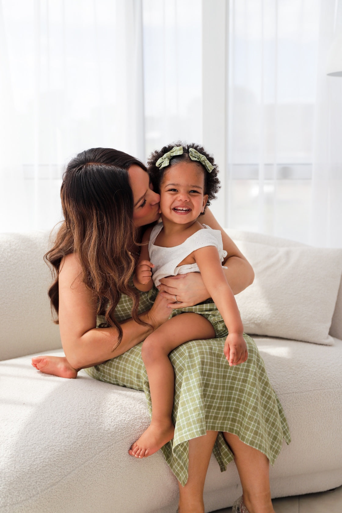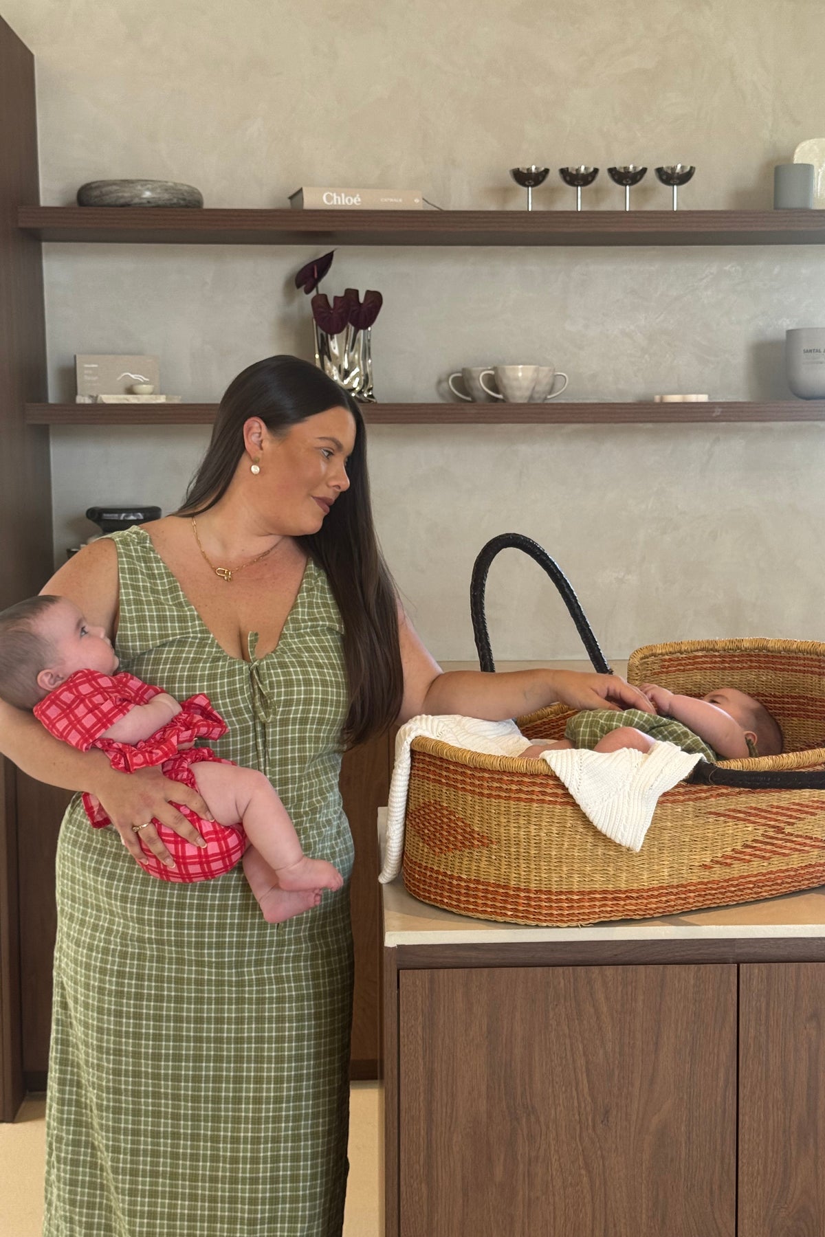Lightweight cotton dress featuring our Thyme print. Breastfeeding friendly with invisible zips on either side. Adjustable chest tie at front and waist ties at the back allow for a flexible and customisable fit. Option to reverse dress and have tie at back or front.