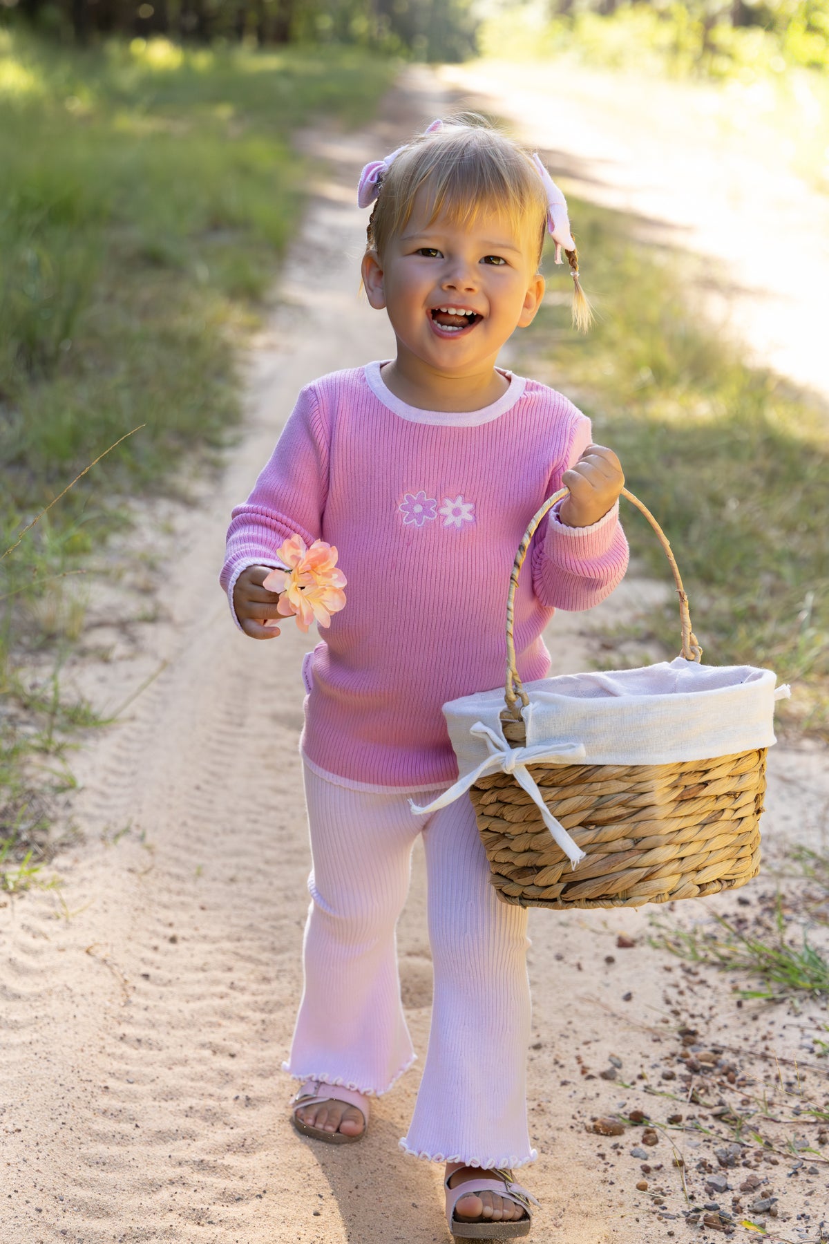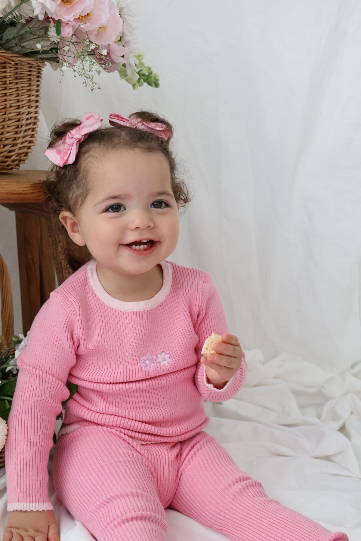 Our long sleeve Sadie ribbed top features small embroidered Milla flowers on the chest, a stretchy ribbed design for a true fit and mini scalloped cuff + hem. Matching leggings + bodysuit also available.