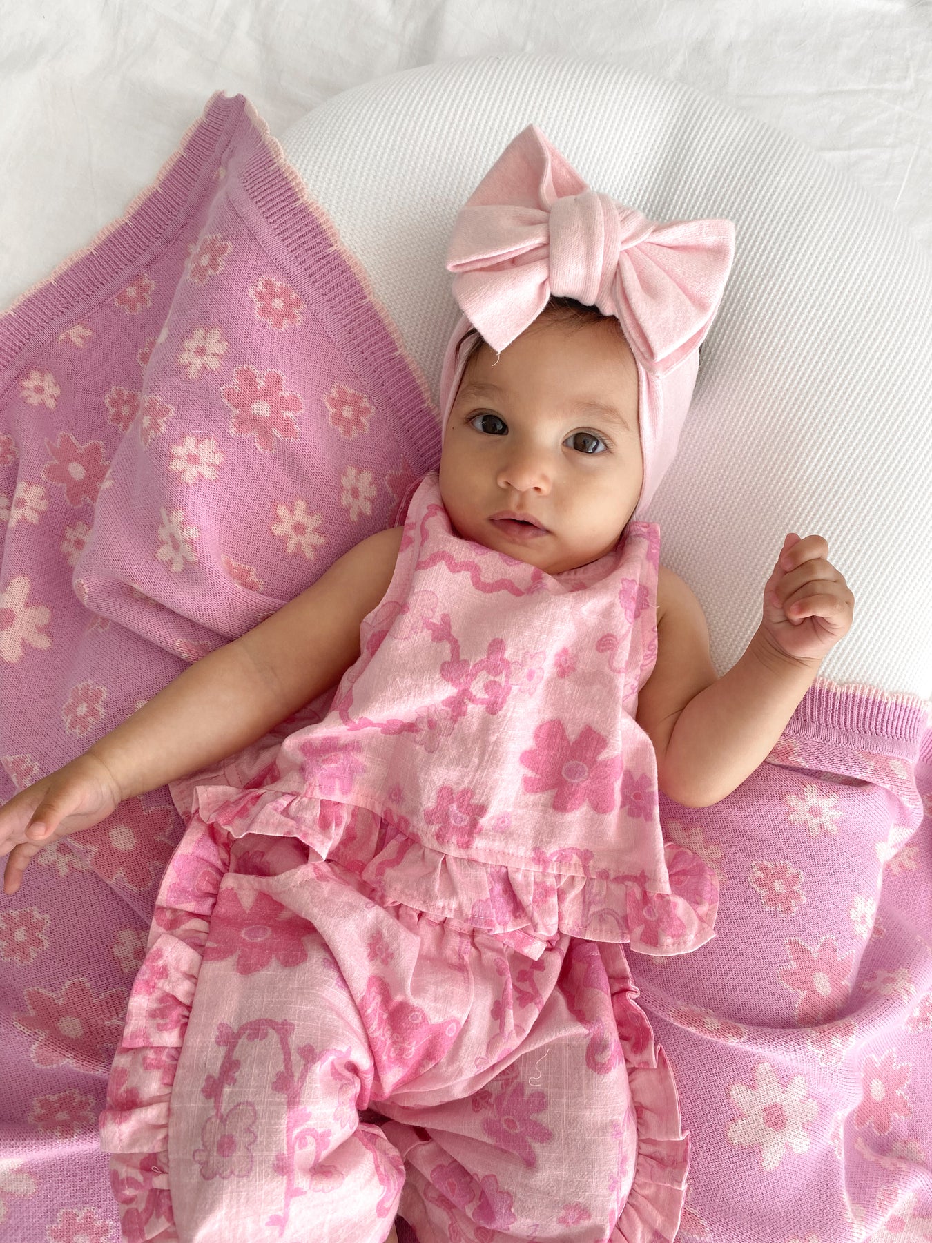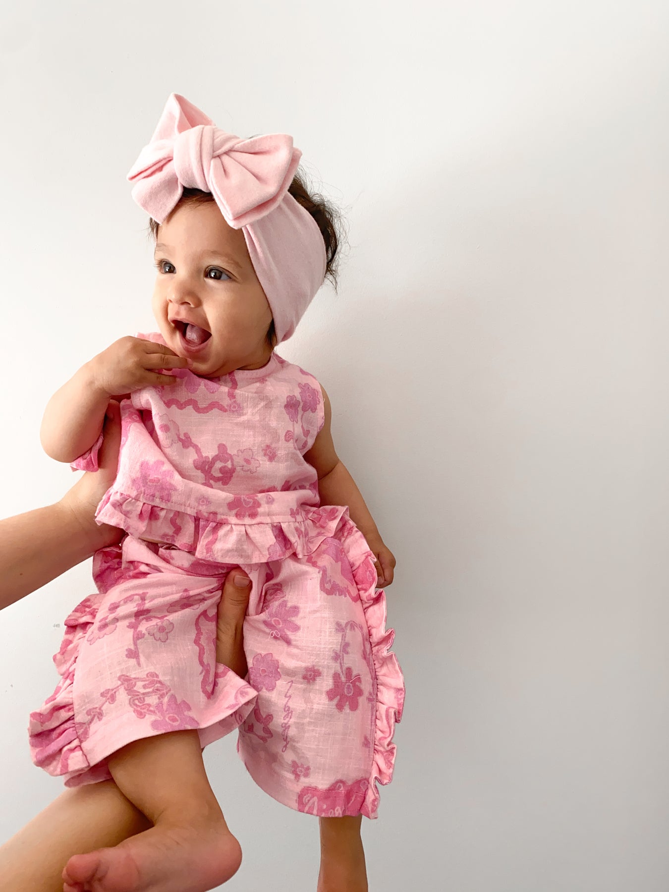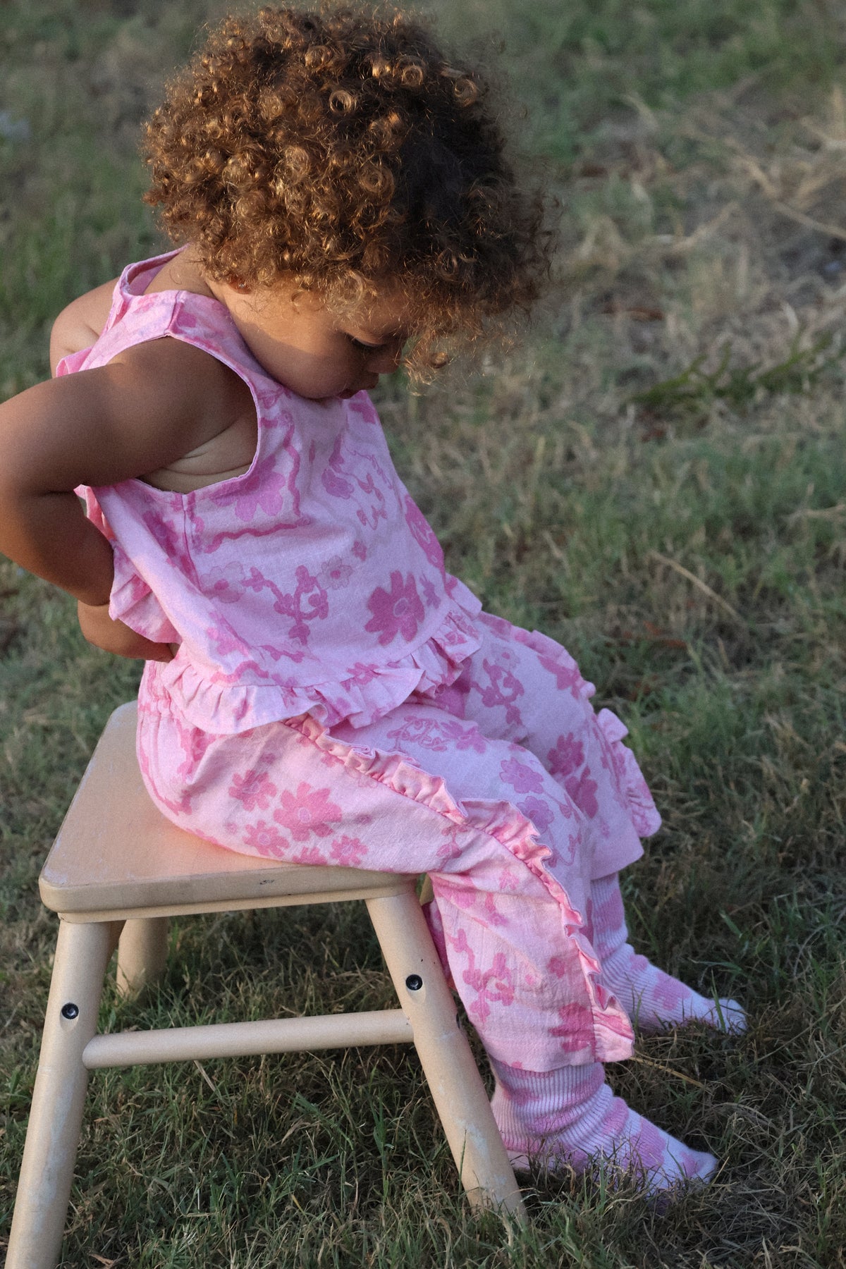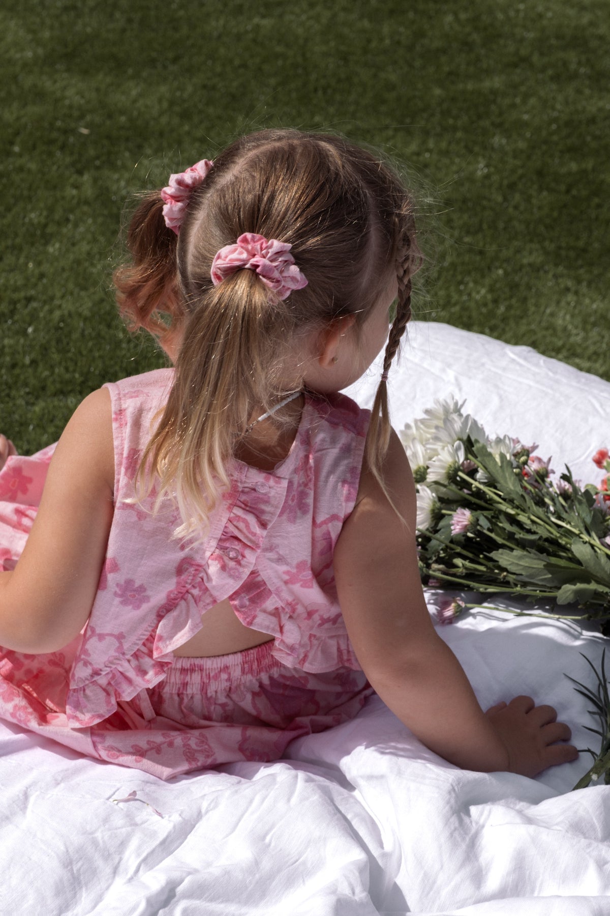 Cotton singlet featuring our Elora printed design. A frill hemmed swing top design at the back with two functional buttons at back of neck for easy on/off. Mix and match with items from our Elora Collection.