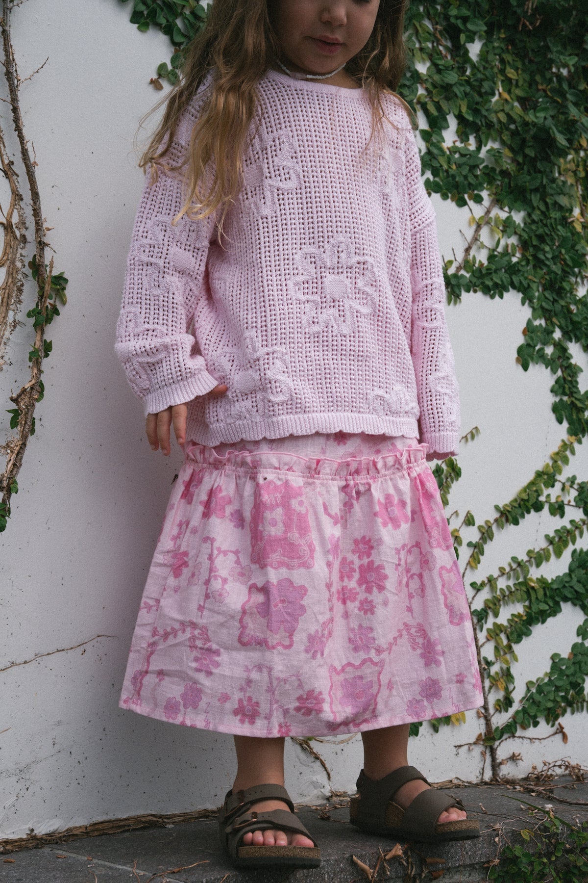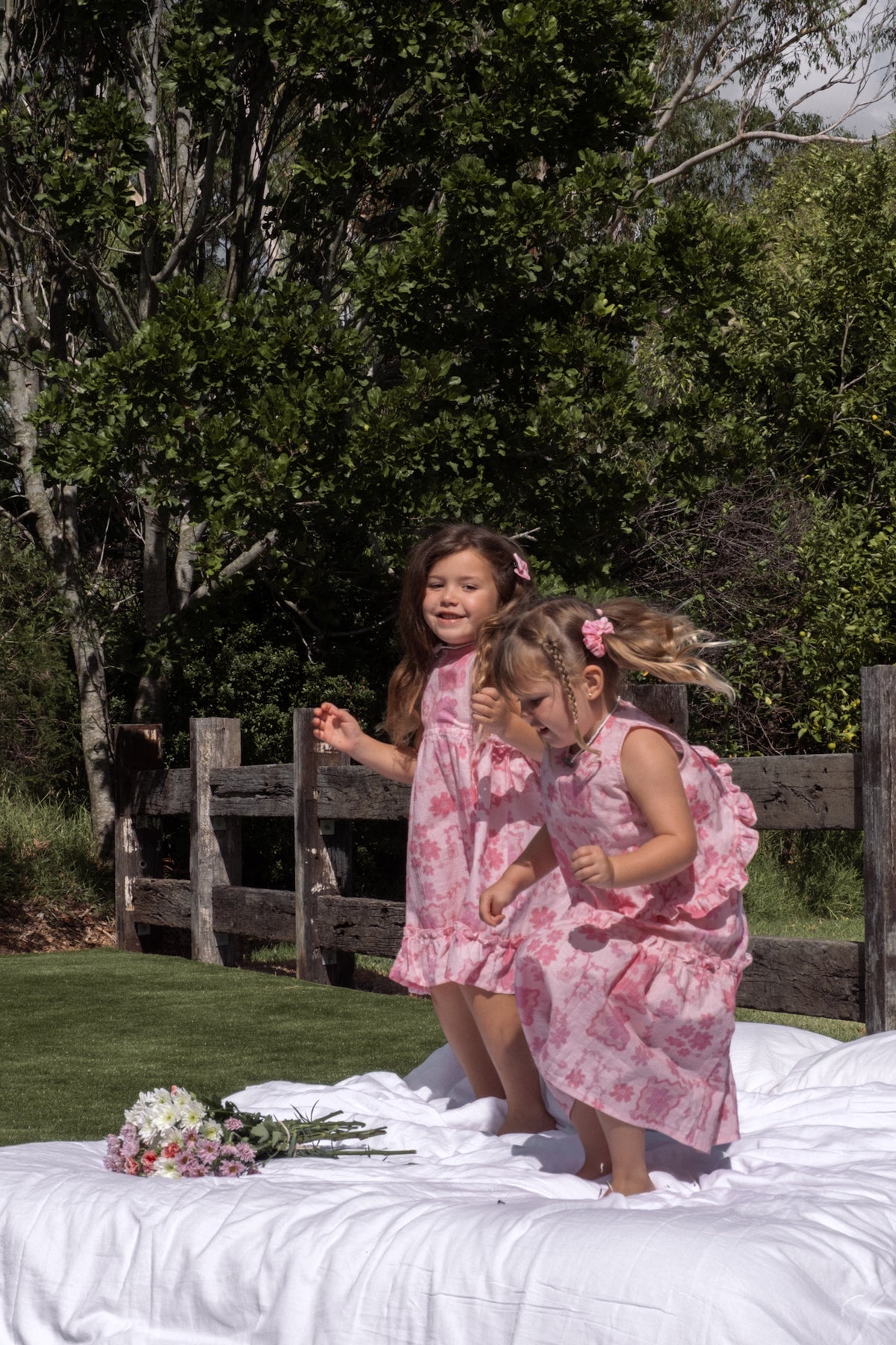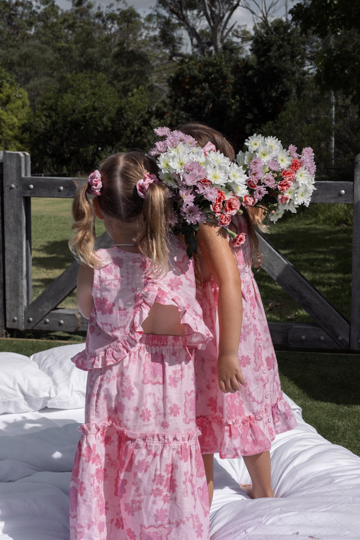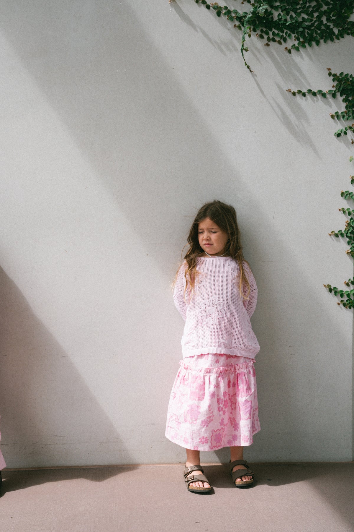 Lightweight, long cotton tiered skirt featuring our Elora print. Small side splits on either side and adjustable ties on each side of the soft elastic waist to create the perfect fit. Mix and match with items from our Elora + Sadie Collections.