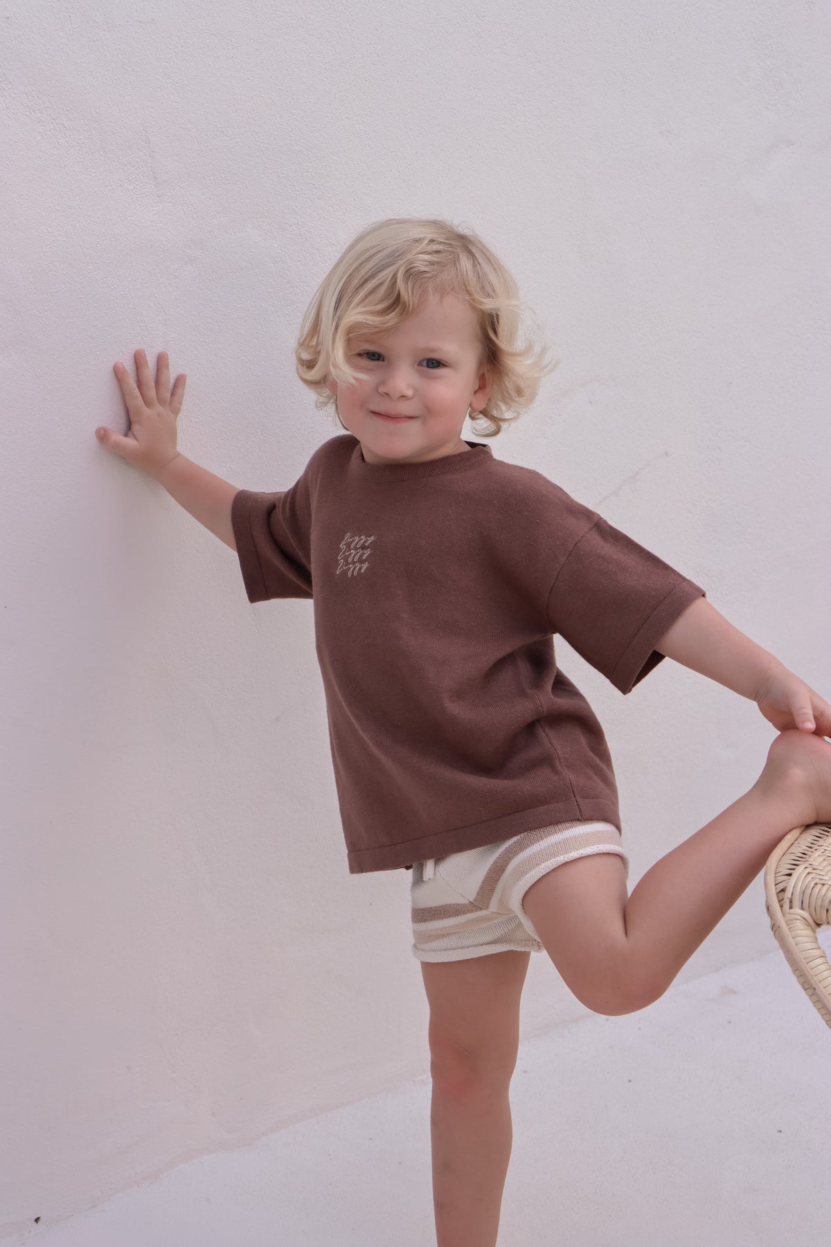 Our OG chocolate hemp & cotton knitted tee, made for everyday wear. Oversized fit, with our original Ziggy embroidered logo design. Matching Mama's tee also available.