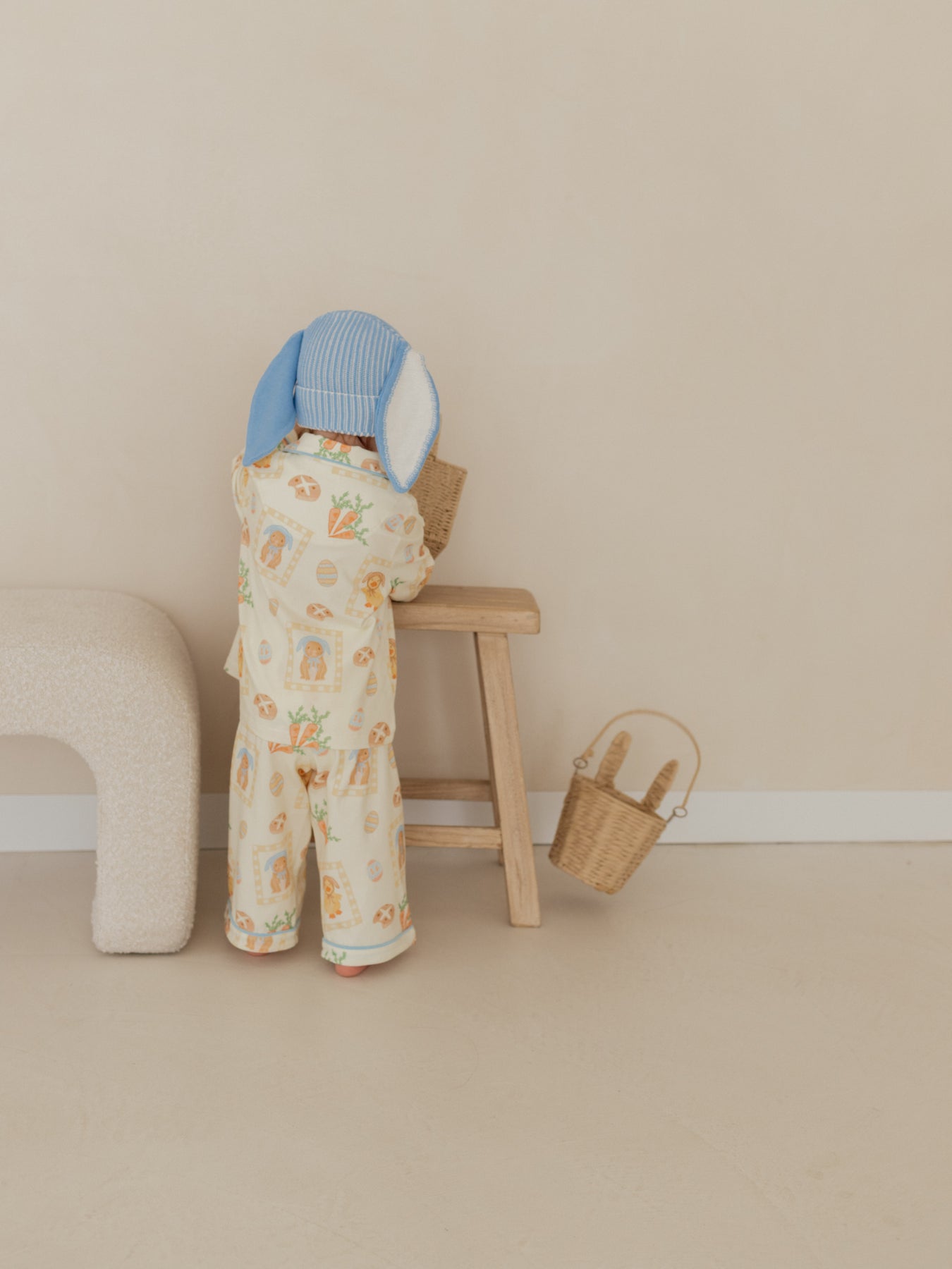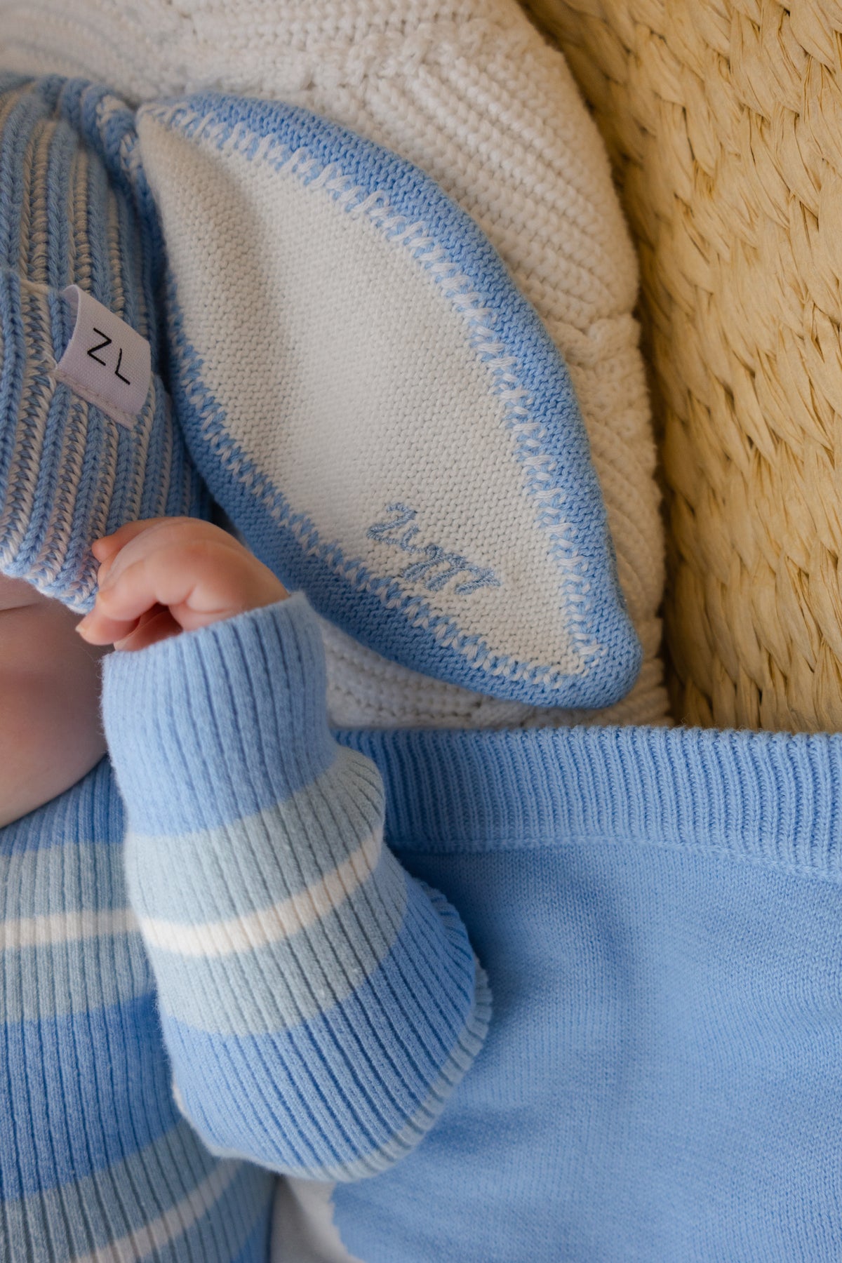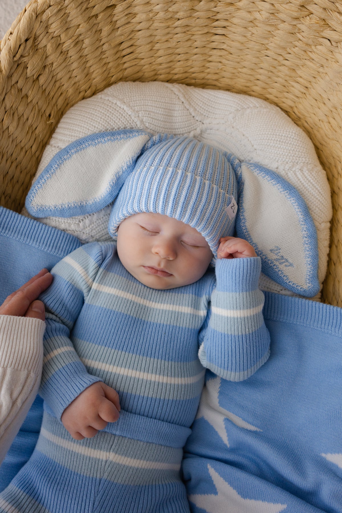 Beautiful two tone braided knit beanie featuring bunny ears with small Ziggy embroidered detail on inner ear. Create the perfect Easter outfit and pair with items from our Beau Easter collection.