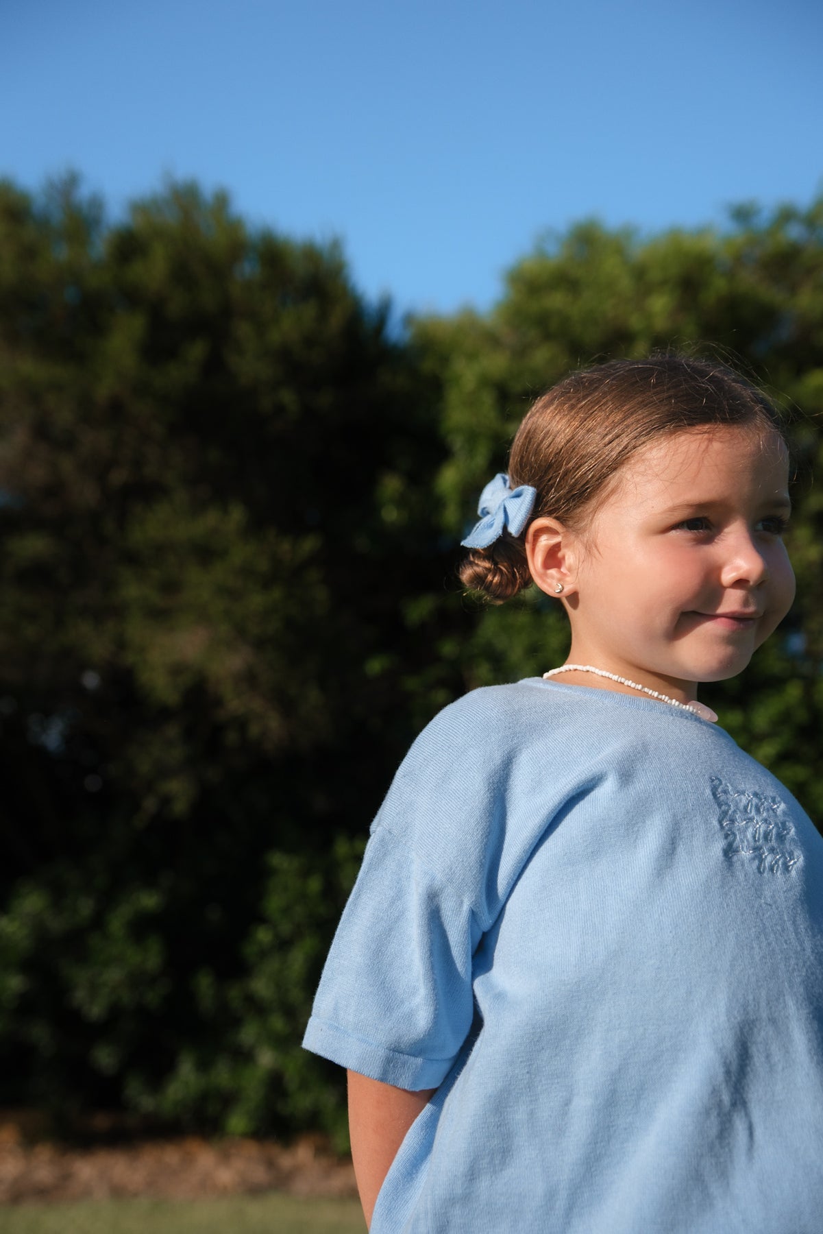 2 x knitted bow hair clips in our River colour.