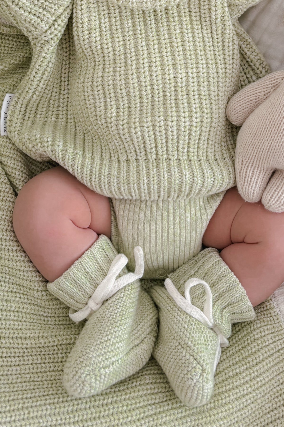 Knitted booties designed to compliment our Lime Collection. Functional drawstring to ensure booties won't fall off when worn.