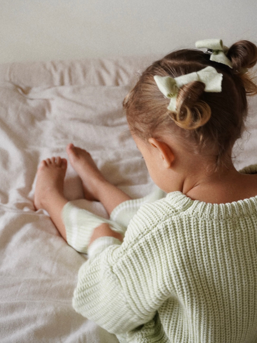 Safety | Never leave baby unattended with bow on. Remove bows before sleeping.
