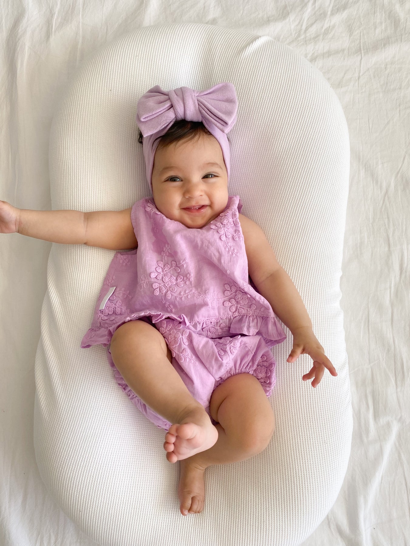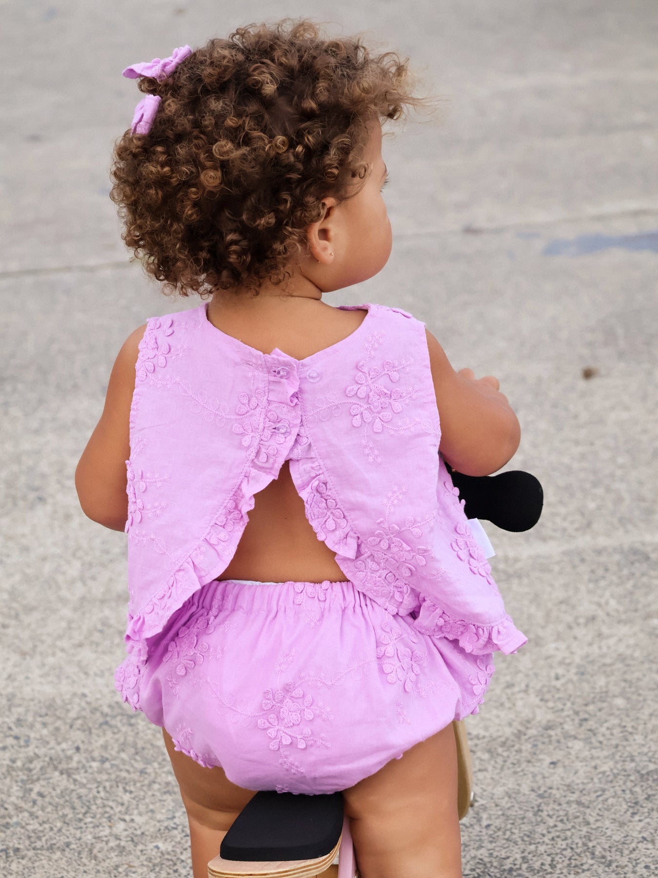 Cotton bloomers in our detailed Suki fabric. Featuring an elastic waist and leg hole. Mix and match with items from our Suki Collection.