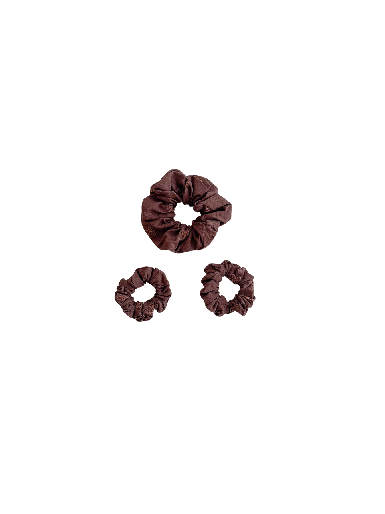 Lightweight linen blend scrunchies featuring our embroidered Winnie design.