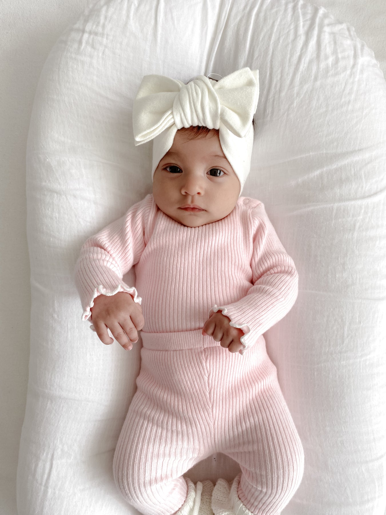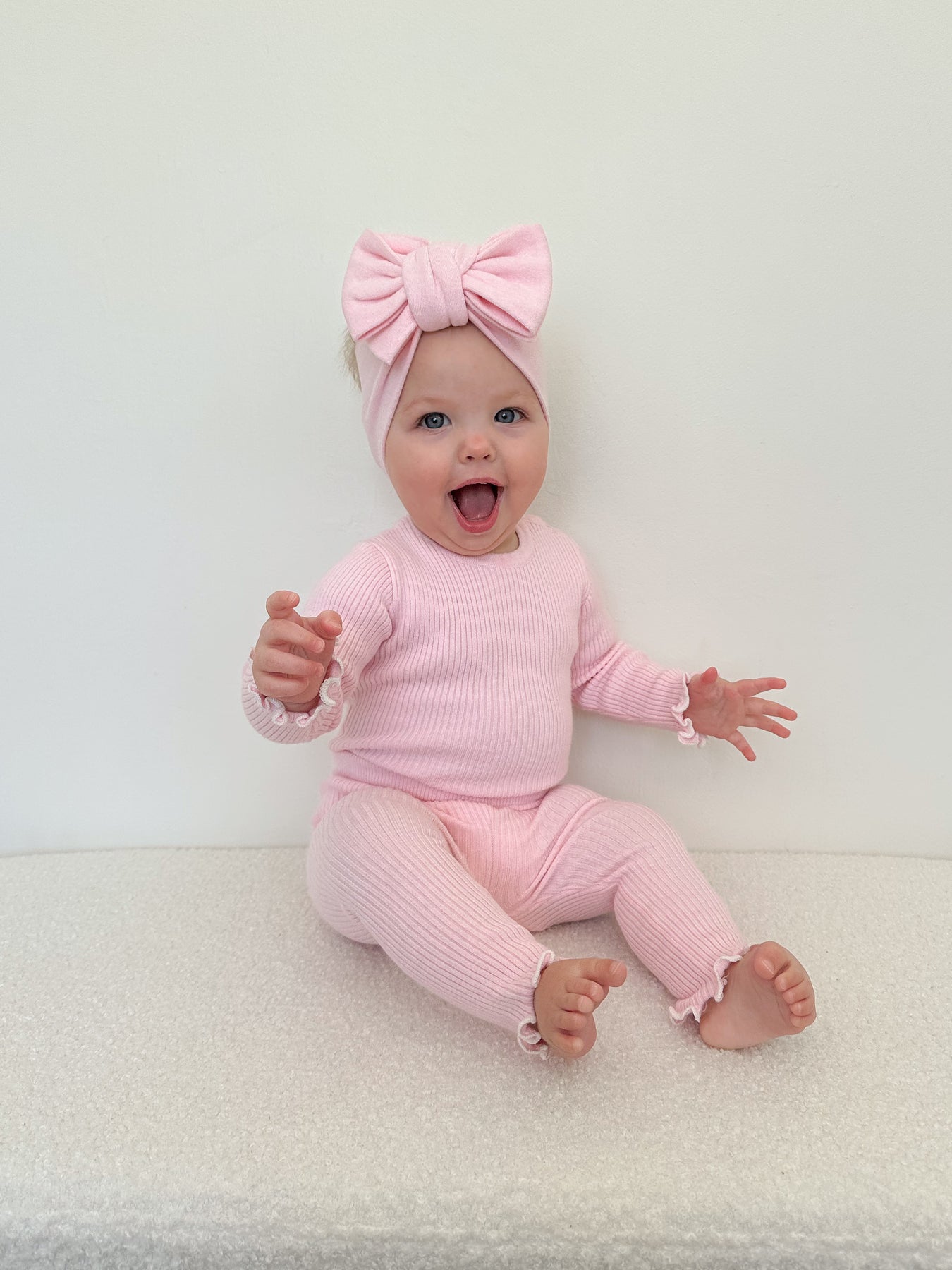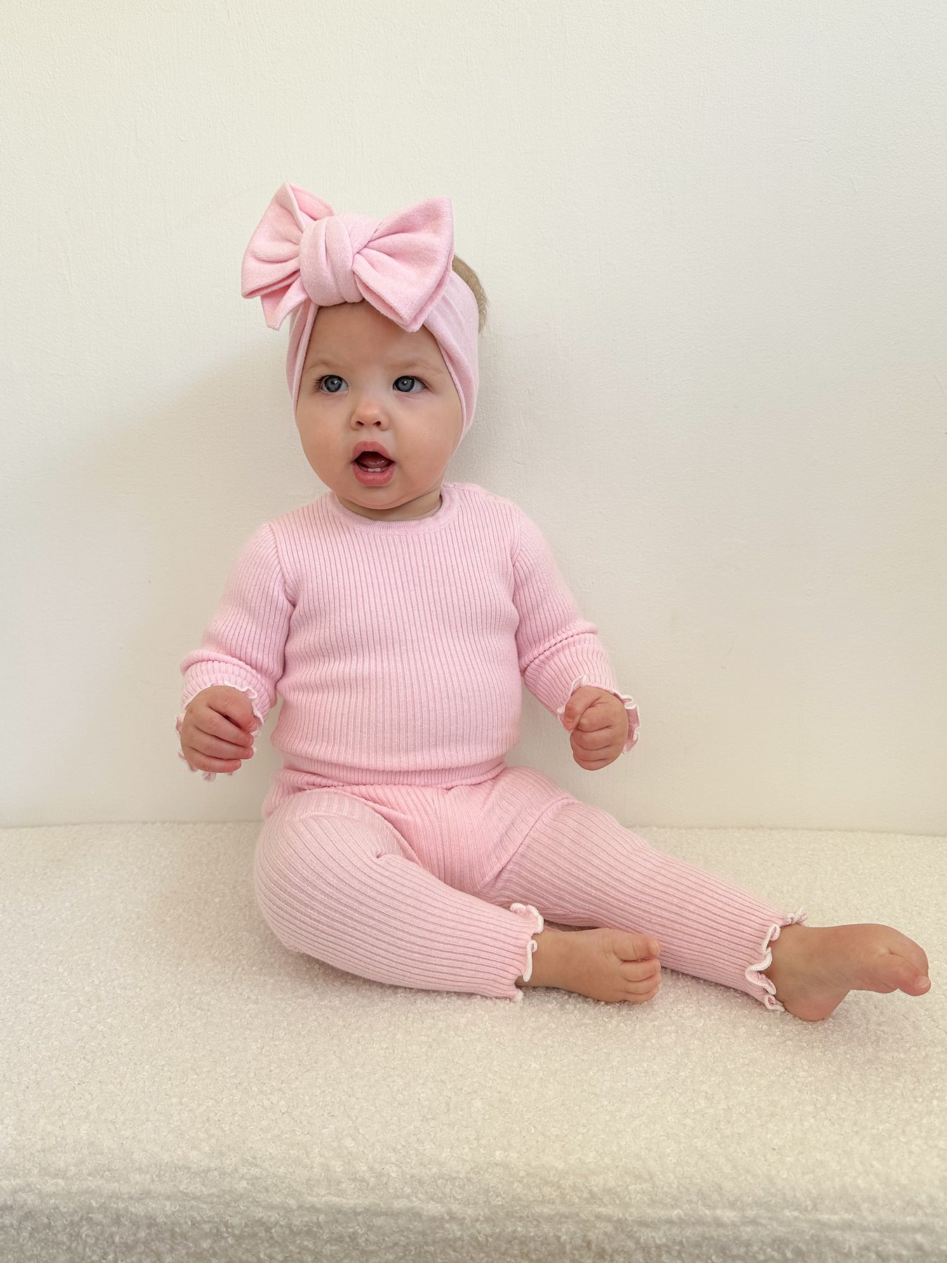Our ribbed knit leggings in our Freya colour feature a gorgeous frill ankle cuff detail with milk coloured stitching. Mix and match with items from our Freya Winter Collection.