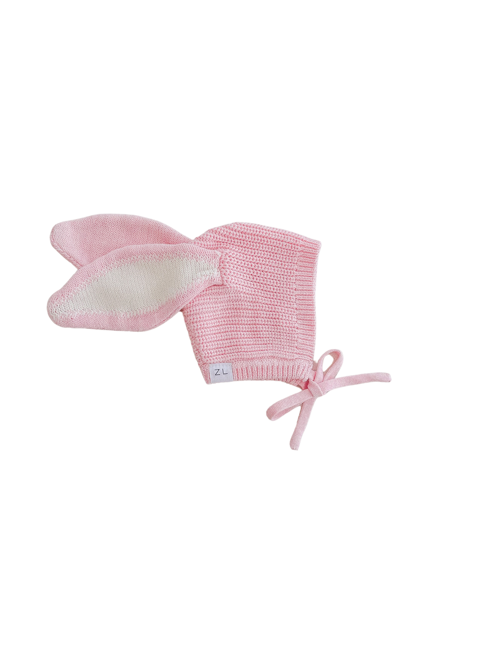 Beautiful two tone chunky knit bonnet featuring bunny ears in our Dahlia colour.