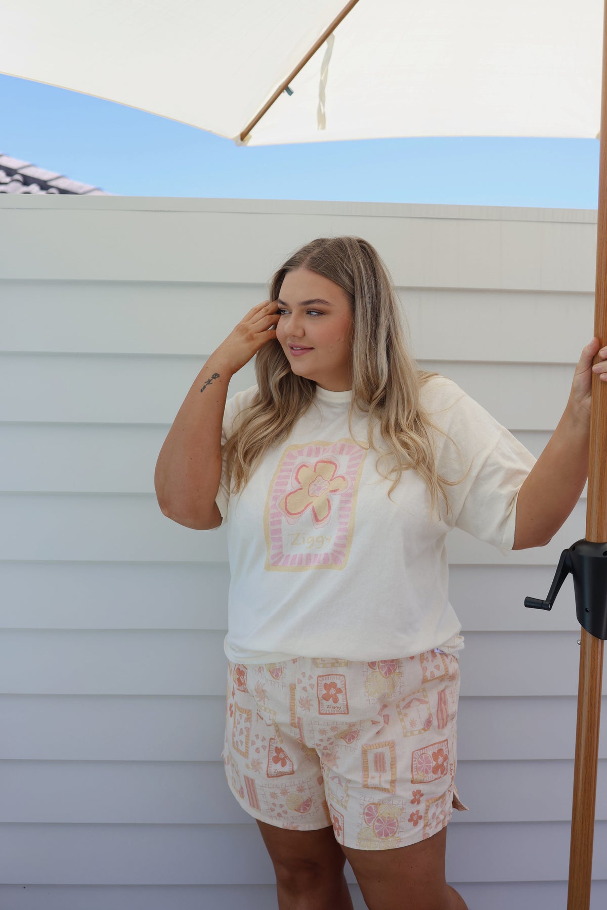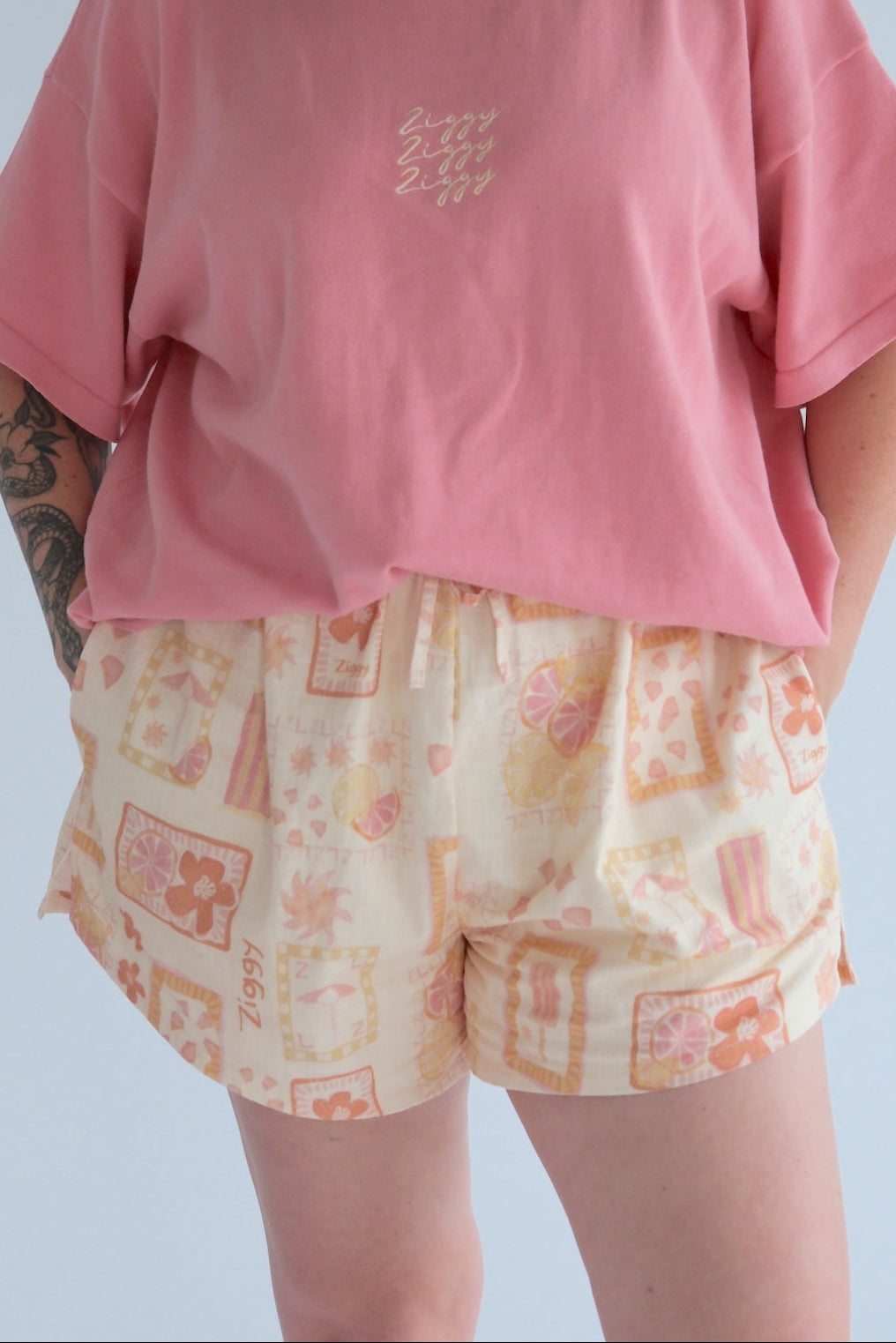 Women's cotton shorts featuring our Cali printed design. Functional drawstring and soft elastic waist for the perfect fit. Mix and match with items from our Women's Collection or match with your mini.